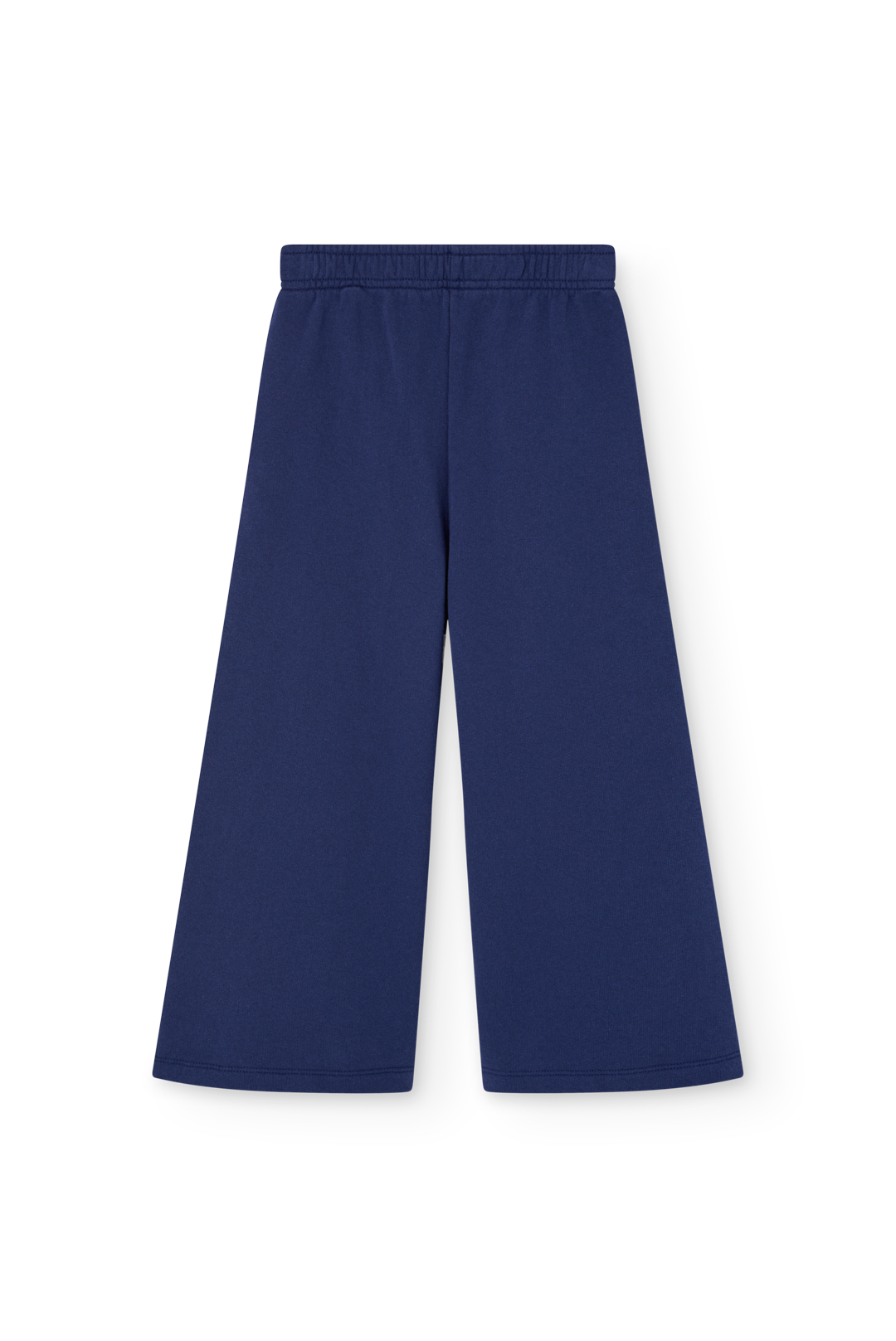 Deep blue wide-leg pants with a lively front illustration and clean back, ideal for cool clothes for kids who love expressive, comfortable fashion. It offers a perfect fabric for summer with unbrushed fleece.