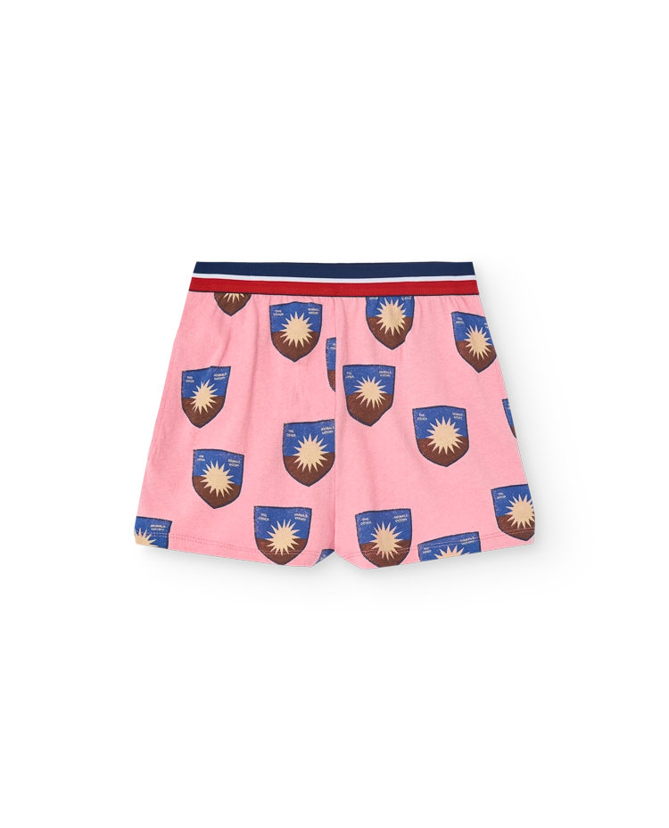 Shorts featuring a sun shields print pattern. Soft and light, ideal for sunny adventures.
