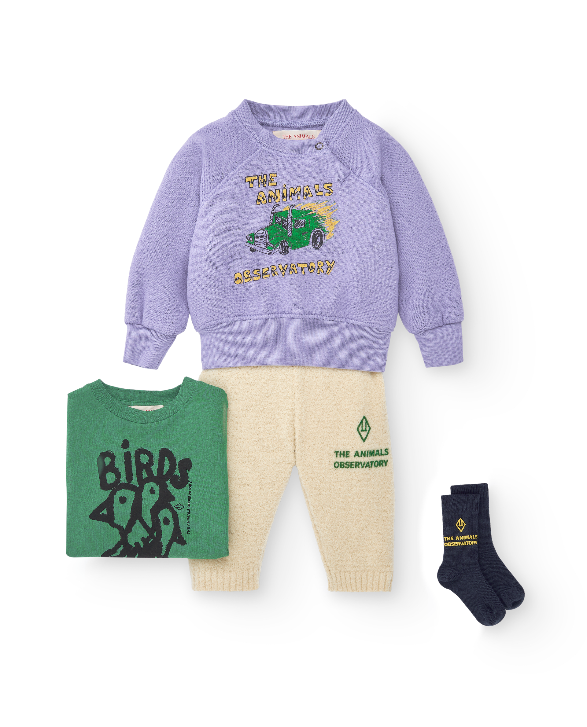 A comfy, warm baby top featuring a cool new design of The Animals Observatory lettering with an energetic vibe.