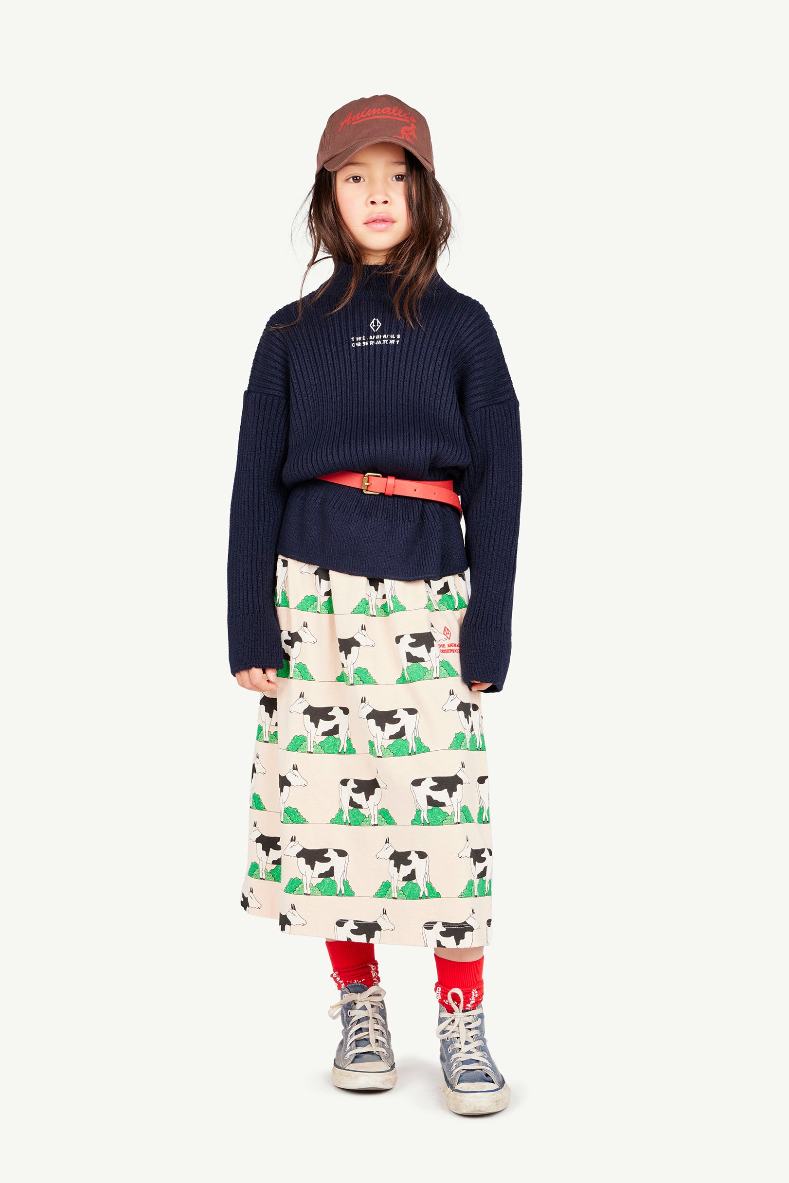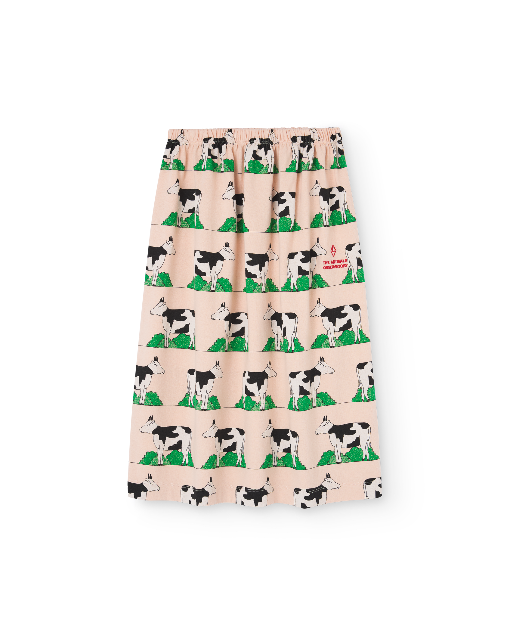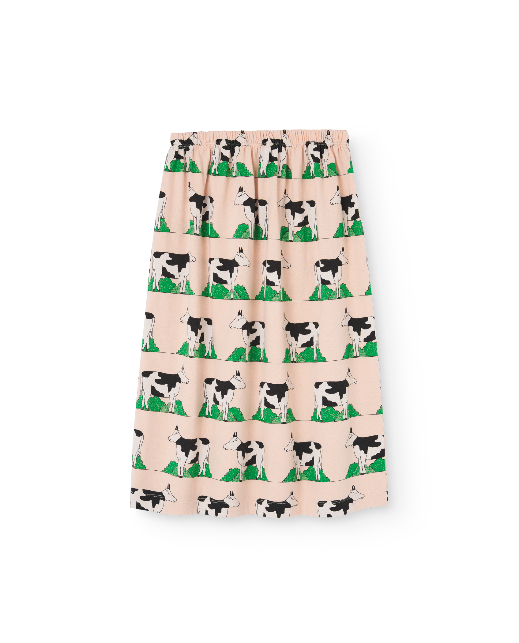 An elegant style with countryside cows printed all over this rose kids skirt.