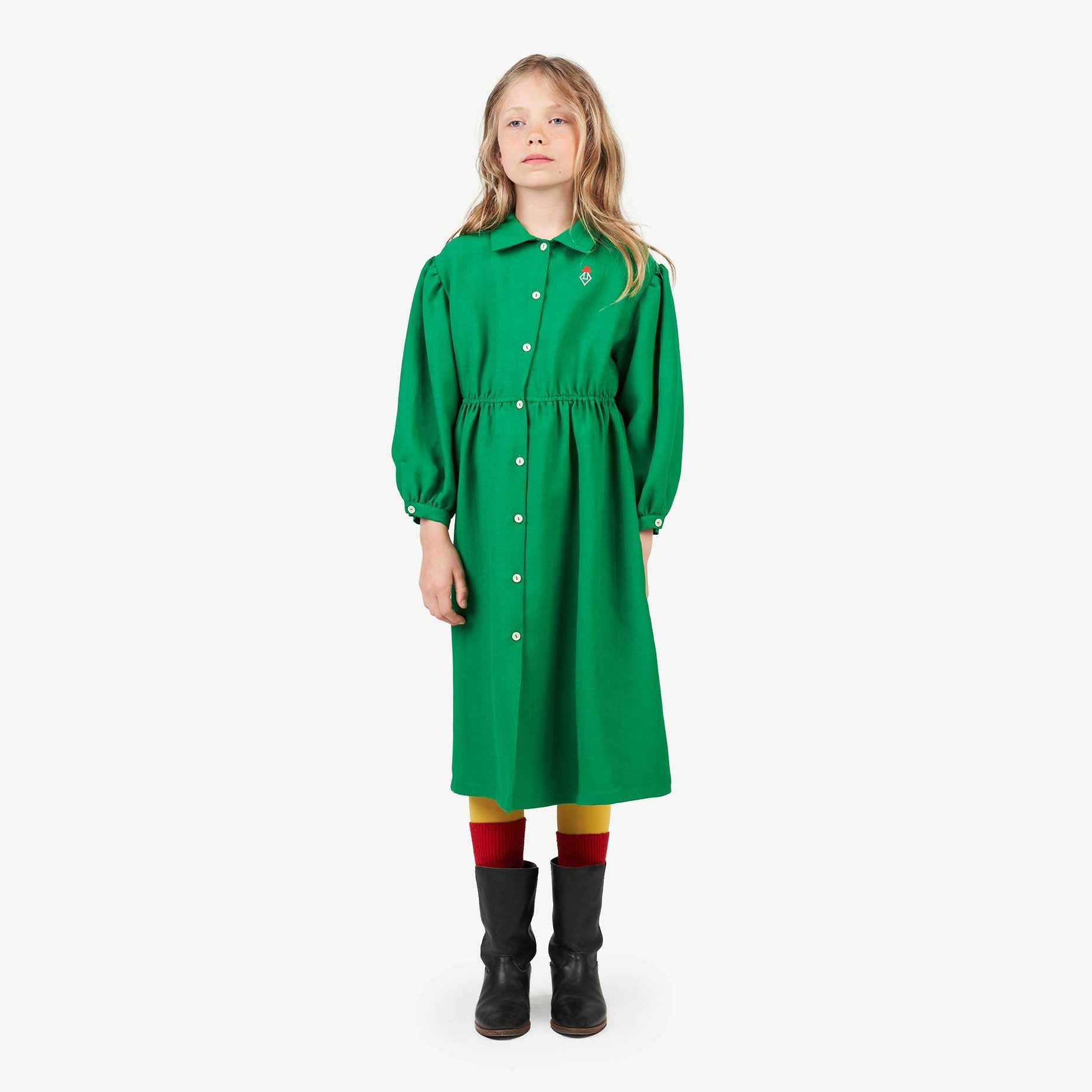 The Green Grass Dolphin Dress is a chic take on the classic shirt dress. Cinched at the waist with long blouson sleeves, pointed collar and front button closure, this maxi length dress is special enough for any ocassion but comfortable for everyday. Drapes beautifully in 78% viscose, 22% polyester.