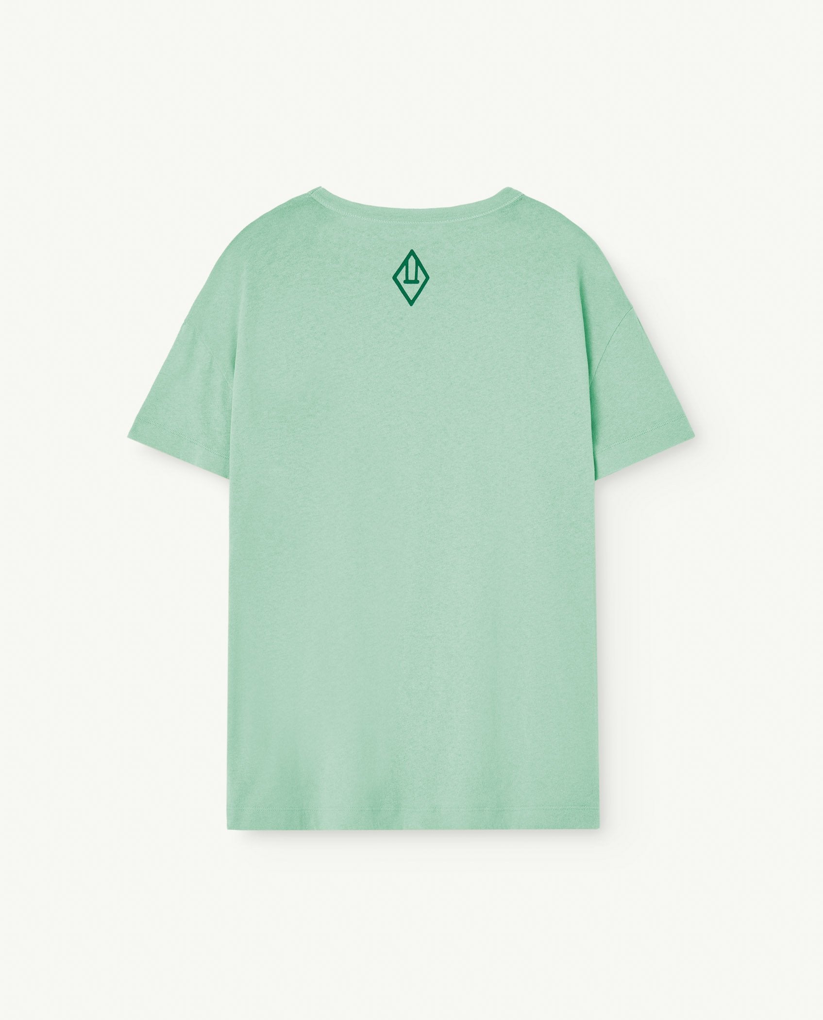 The Turquoise Orion Adults T-Shirt in a regular fit features The Animals Observatory logotype on a plain, basic yet elegant piece of clothing. With a comfortable round collar, this T-Shirt is 100% made of cotton, which will ensure its durability as well as a really nice feeling when wearing it. As a woman T-Shirt, its sizes include XS, S, M, and L.