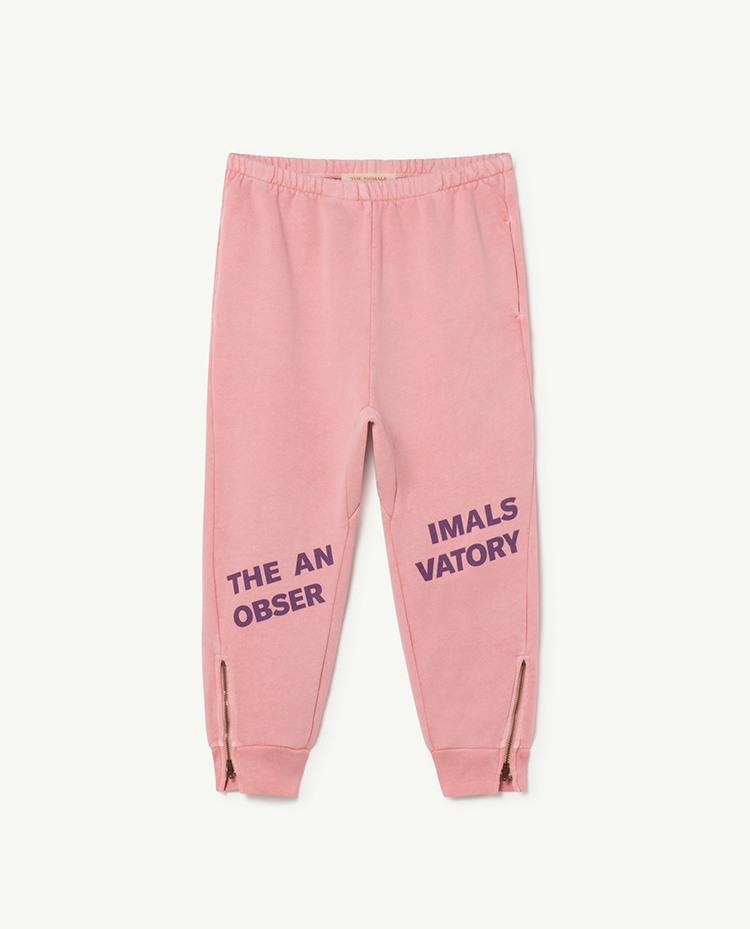 Pink power. The loose sweatpants 100% cotton made have an elastic waist, a zip detail and the Animals Observatory capital letters on them. The Animals Observatory Panther Pants have an inevitable Henry Mancini melody on them. The model's height is 134 cm and is wearing size 8 years.