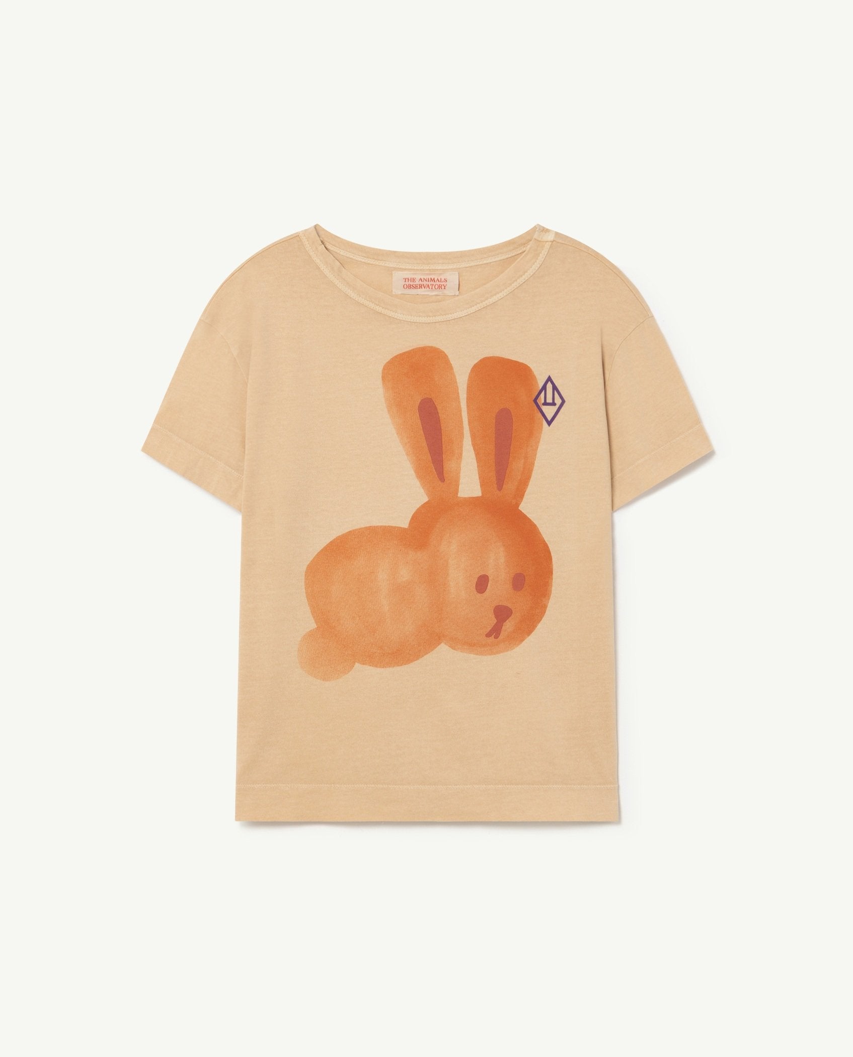 A magnetic orange rabbit print and The Animals Observatory purple logo are everything in this comfy 100% cotton Brown Rabbit Rooster T-Shirt. The model's height is 126 cm and is wearing size 8 years.