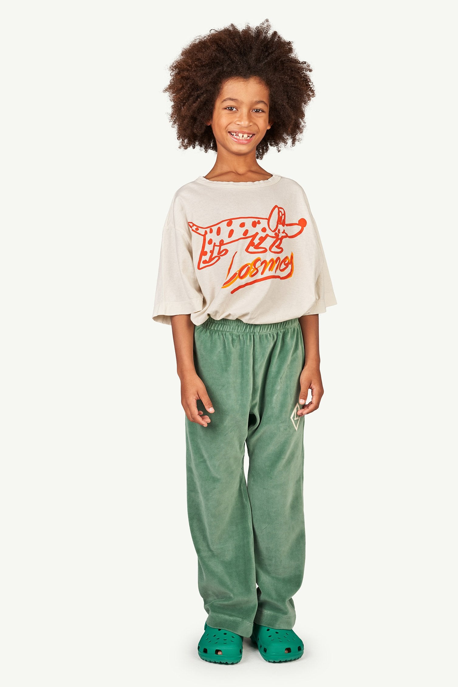 This White Rooster Cosmo Oversize Kids T-Shirt is 100% cotton made and has a Parisian vintage feel all around. Inspired by the lettering used in concert announcements and gatherings, this illustration will transport you to le coeur de Paris. The model's height is 131 cm and is wearing size 8 years.