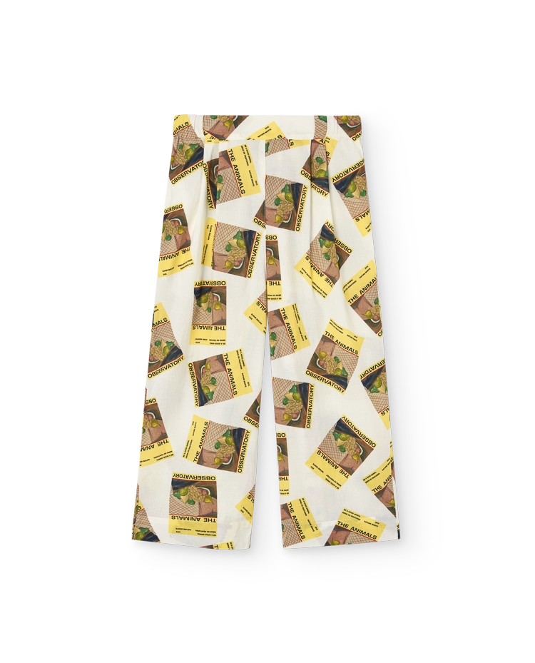 Pants with a vintage still life magazine cover pattern. Artistic, elegant, ideal for charming outfits.