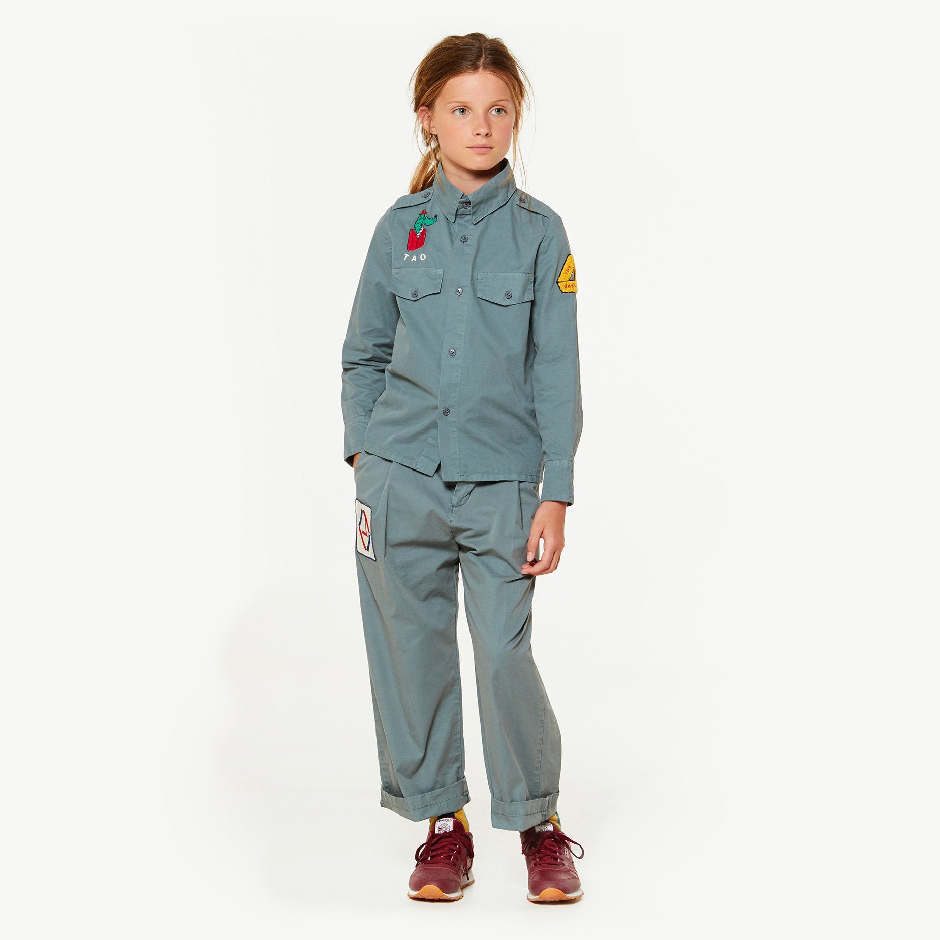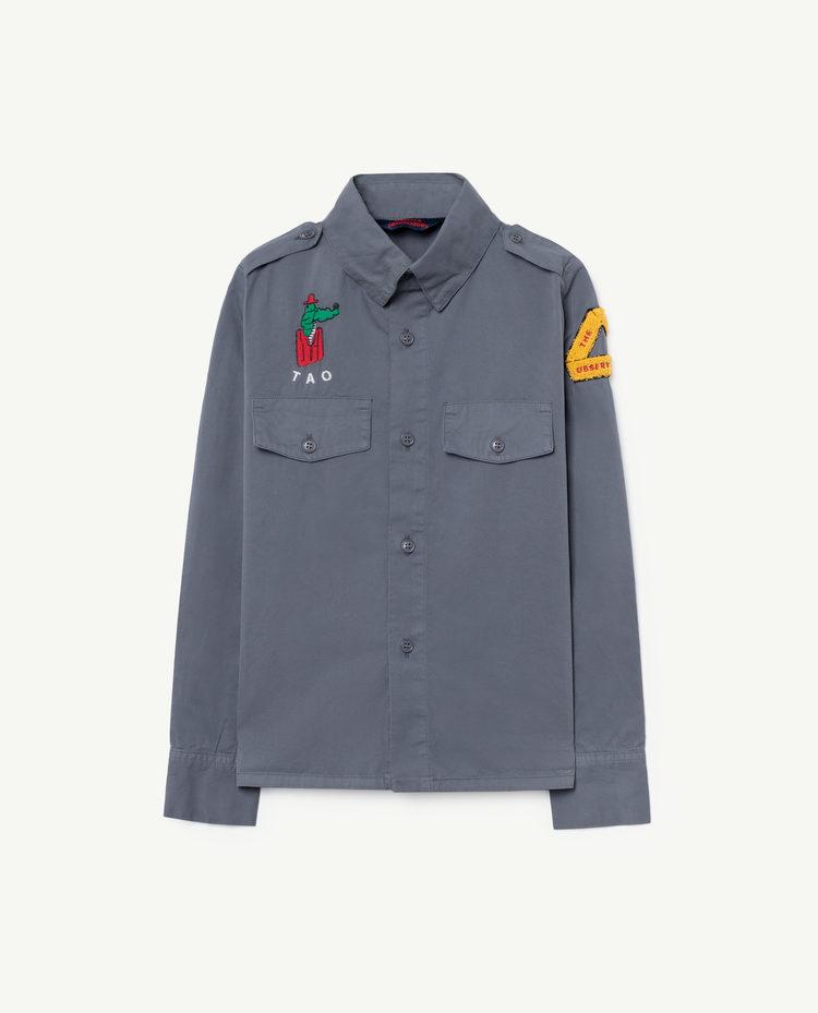 Grey Twill Coyote Shirt, hard-wearing fabric with a military cut and rebellious patches. 100% cotton.