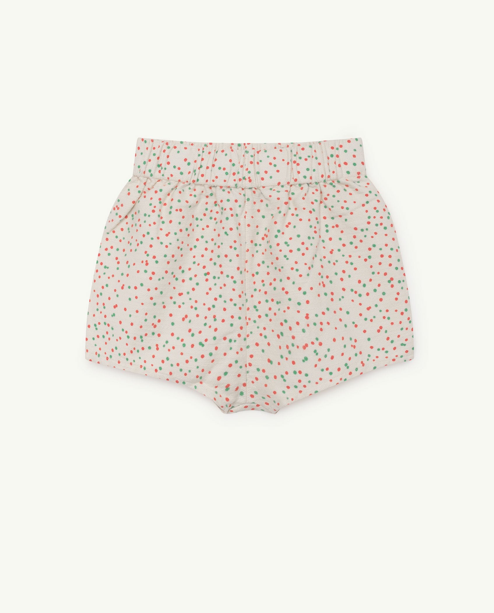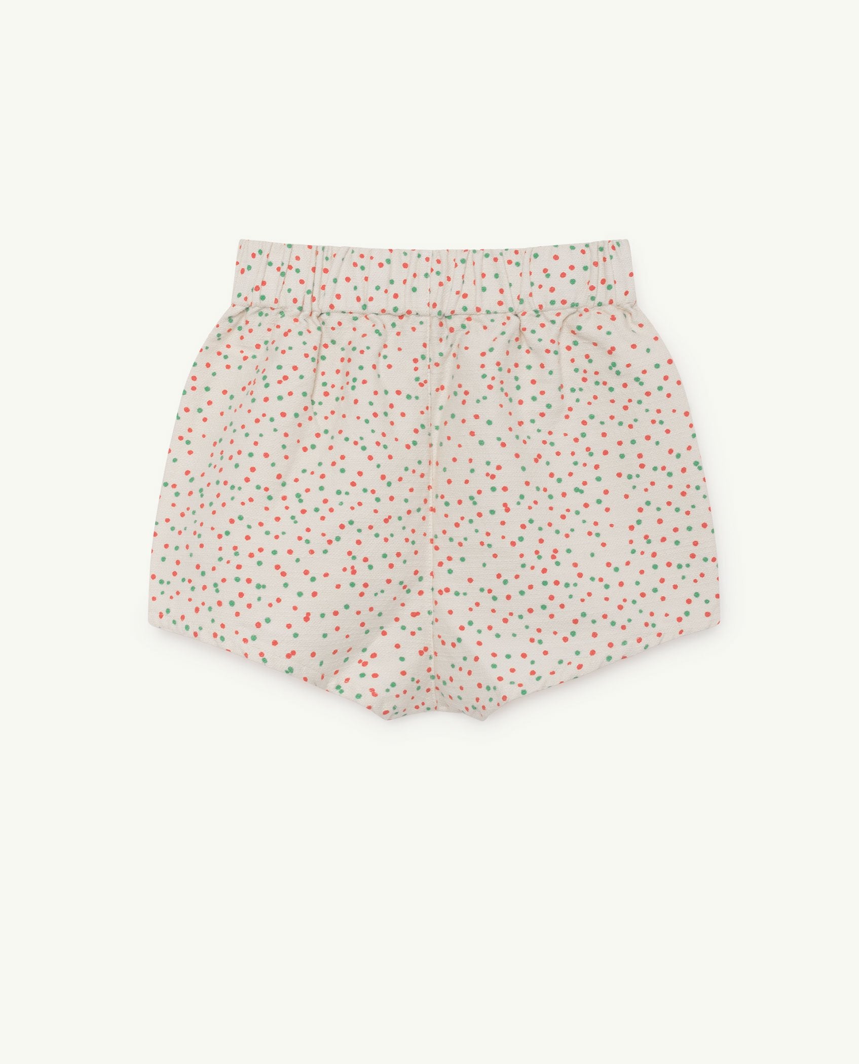 White clam shorts, cute colours and prints and soft cotton, fitted at the waist.