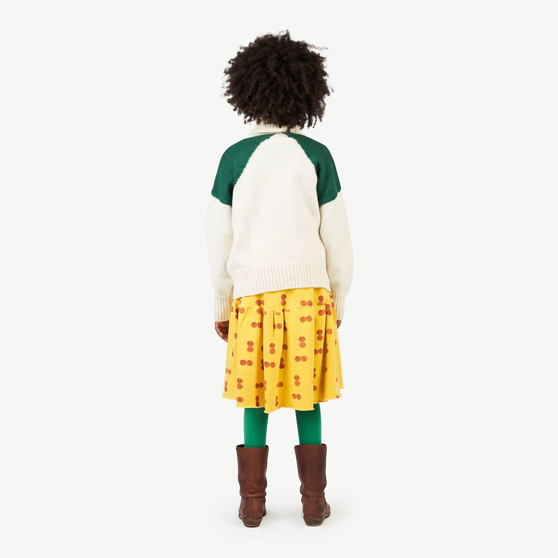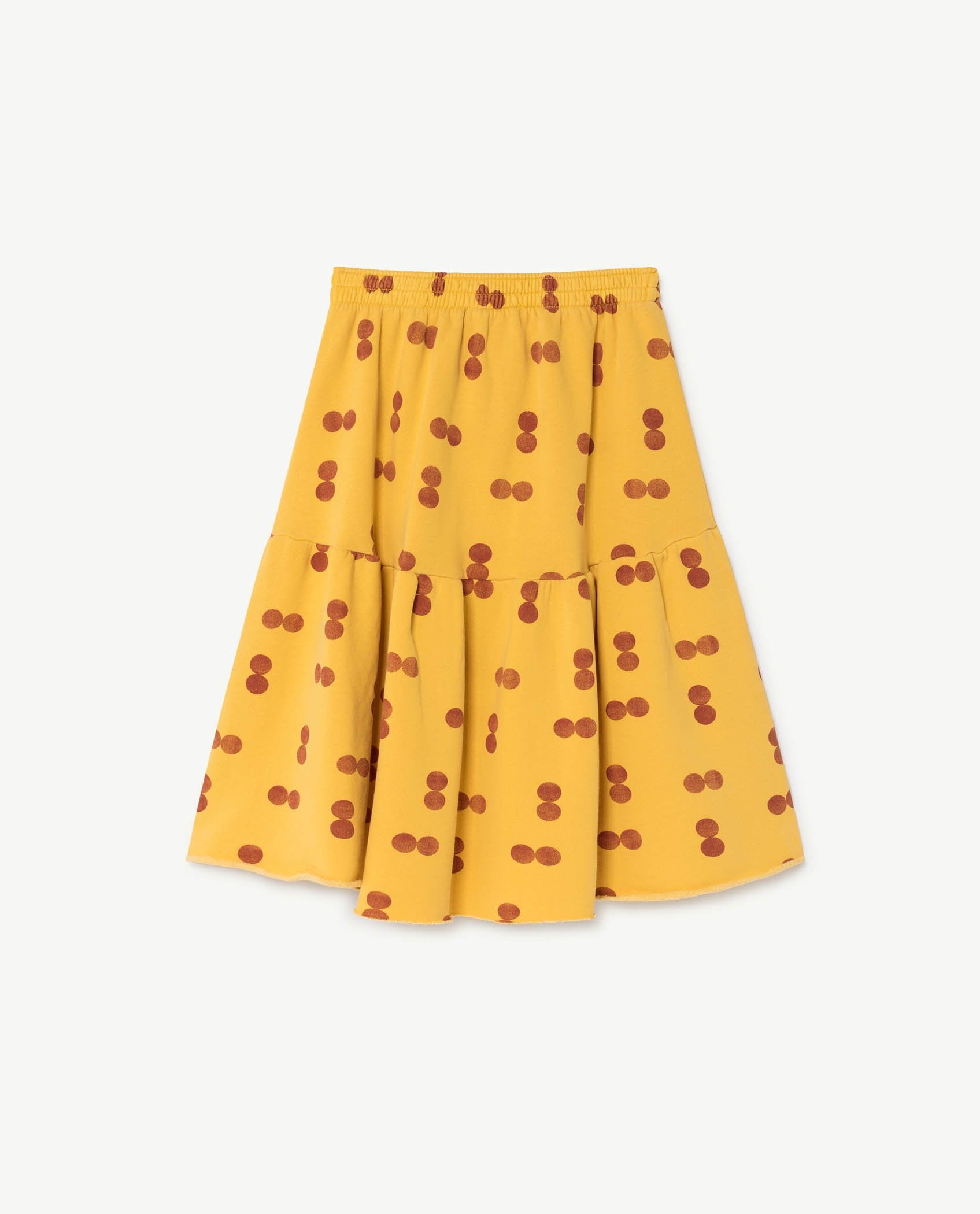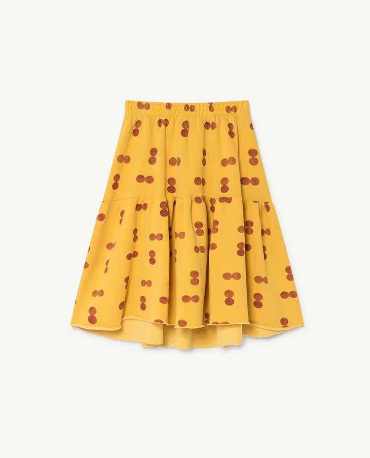 The Yellow Cat Skirt is a sporty and feminine skater skirt with a slightly gathered tiered skirt, in a bright, all-over print. The elastic waistband provides maximum comfort for all their outdoor adventures. Knee length. 100% cotton.