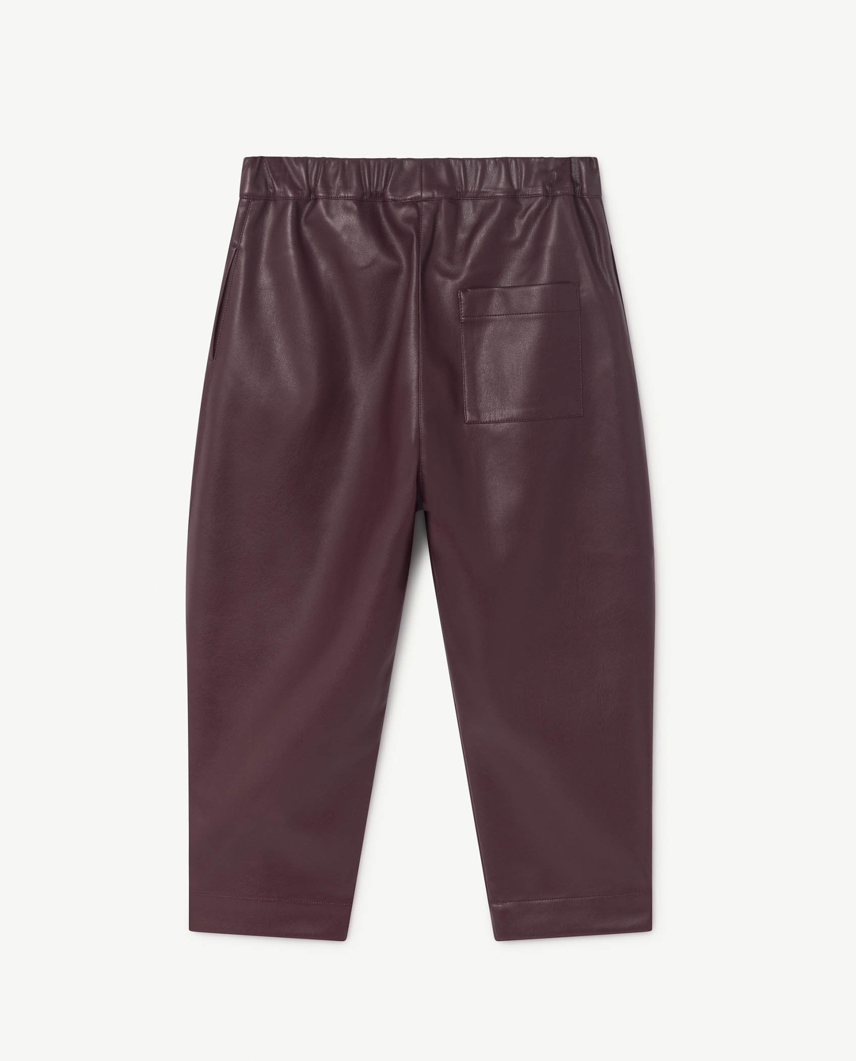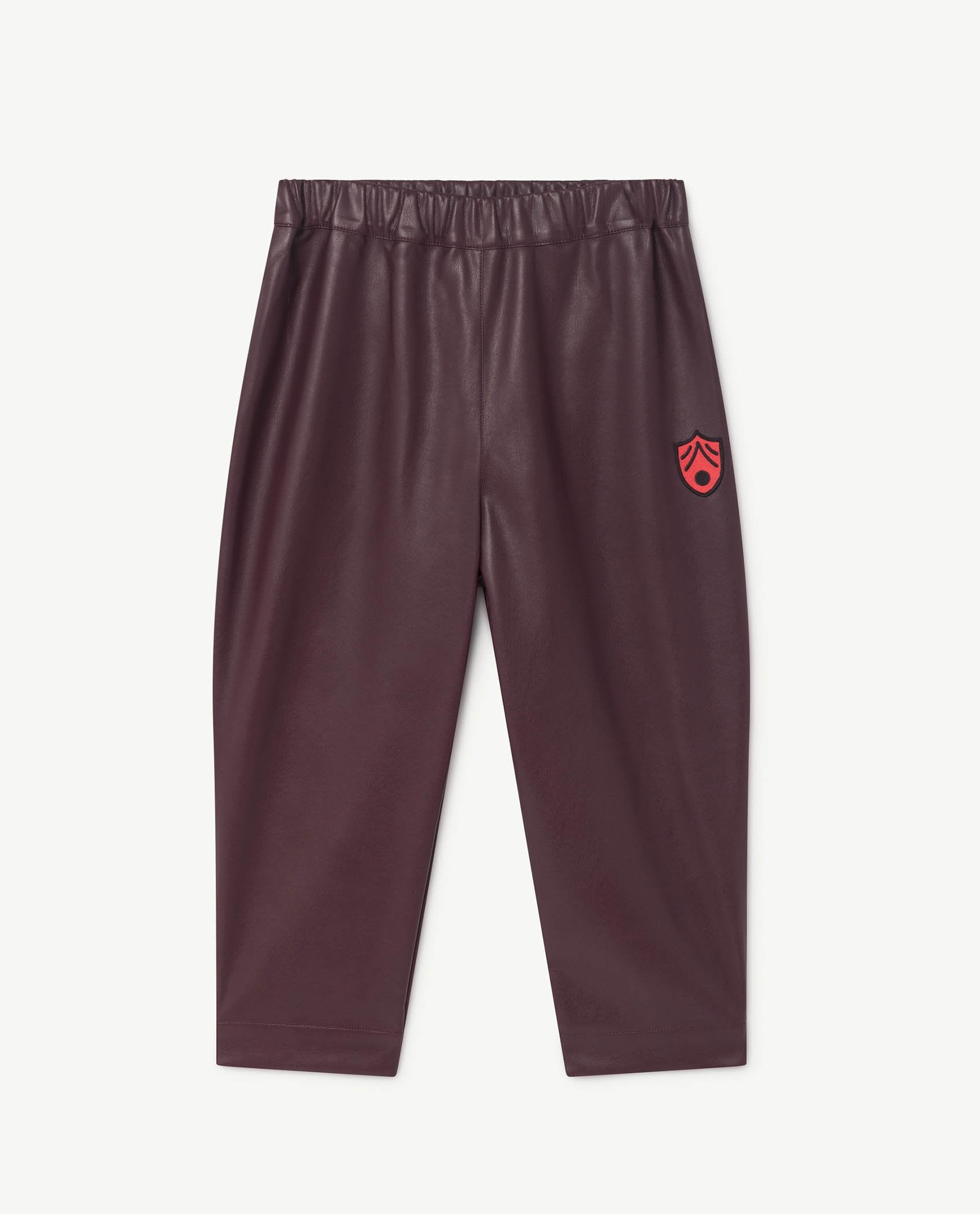 The Maroon Camel Pants have a slouchy and relaxed fit with a gathered, elasticized waist and The Animals Observatory logo on the upper left leg. Pull-on. 100% polyester.