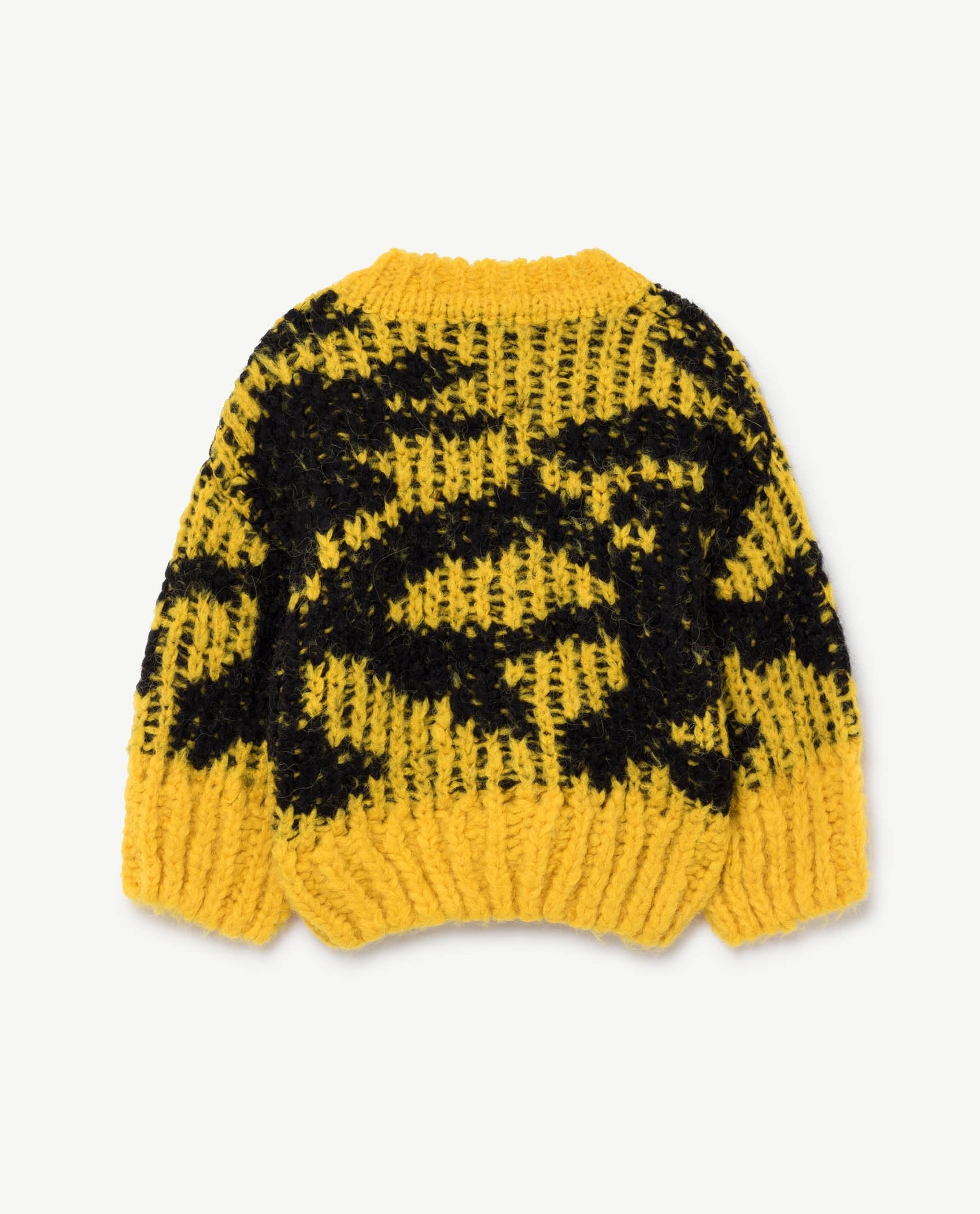 The Yellow Arty Racoon Cardigan is a vibrant reinterpretation of the classic cardigan with pops of colour and abstract design, it livens up any look and keeps them super snug in soft alpaca wool blend. 40% polyacrylic, 36% alpaca, 14% wool, 10% polyamide.