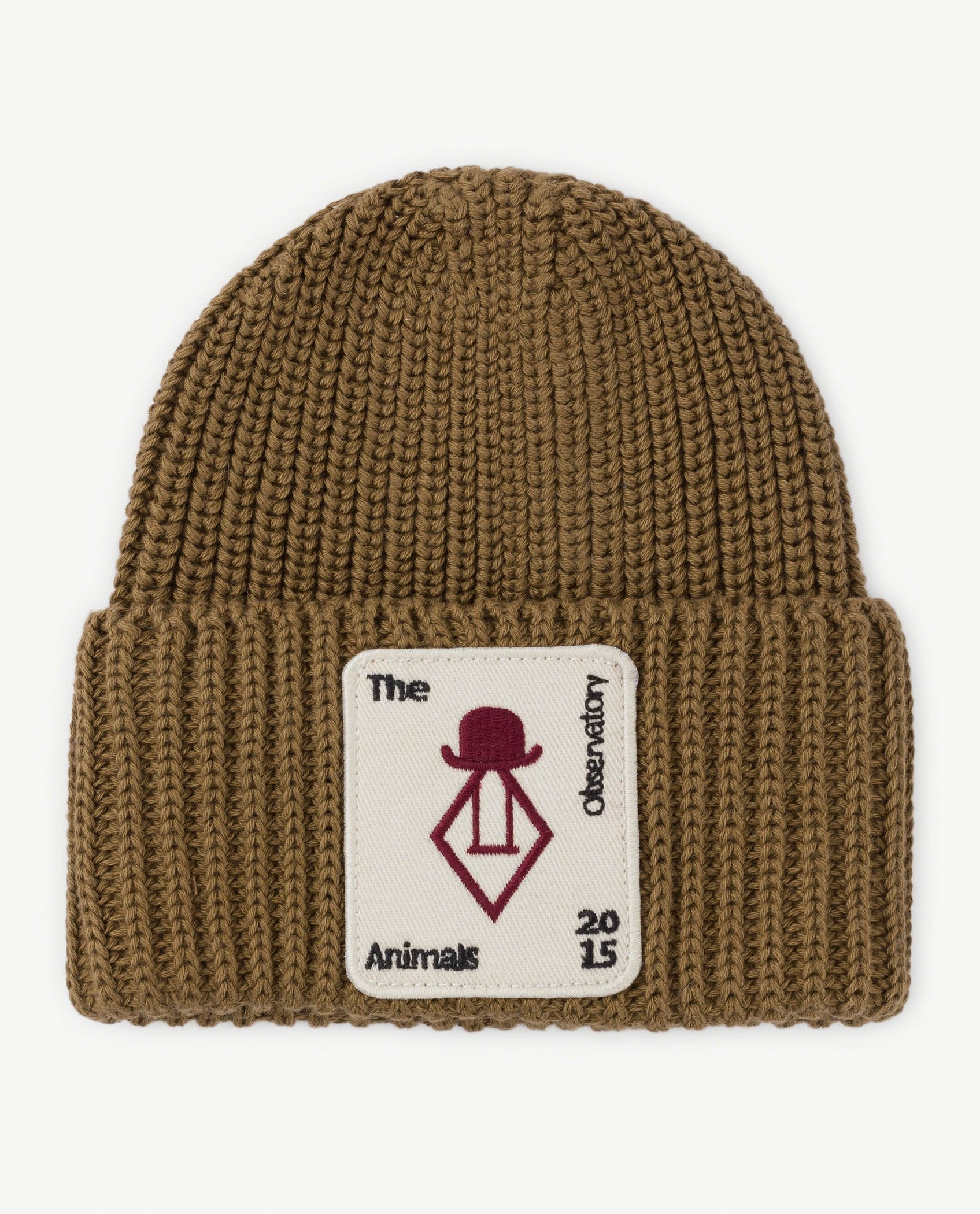 The Military Green Baby Plain Pony hat is a cool weather staple. Cotton rib knit beanie features a prominent The Animals Observatory patch on the front. 100% cotton.
