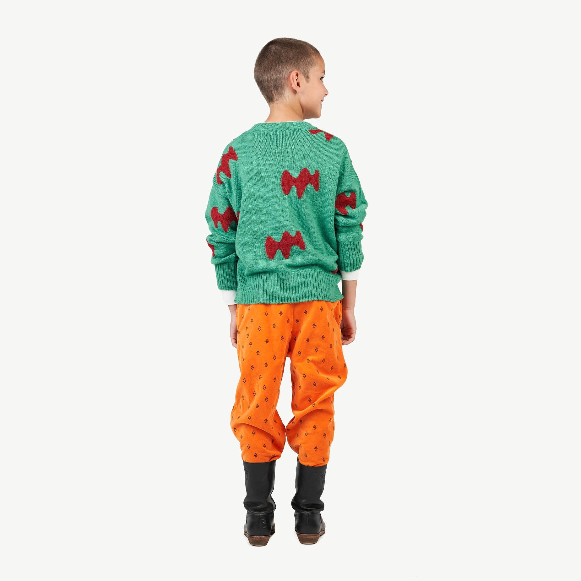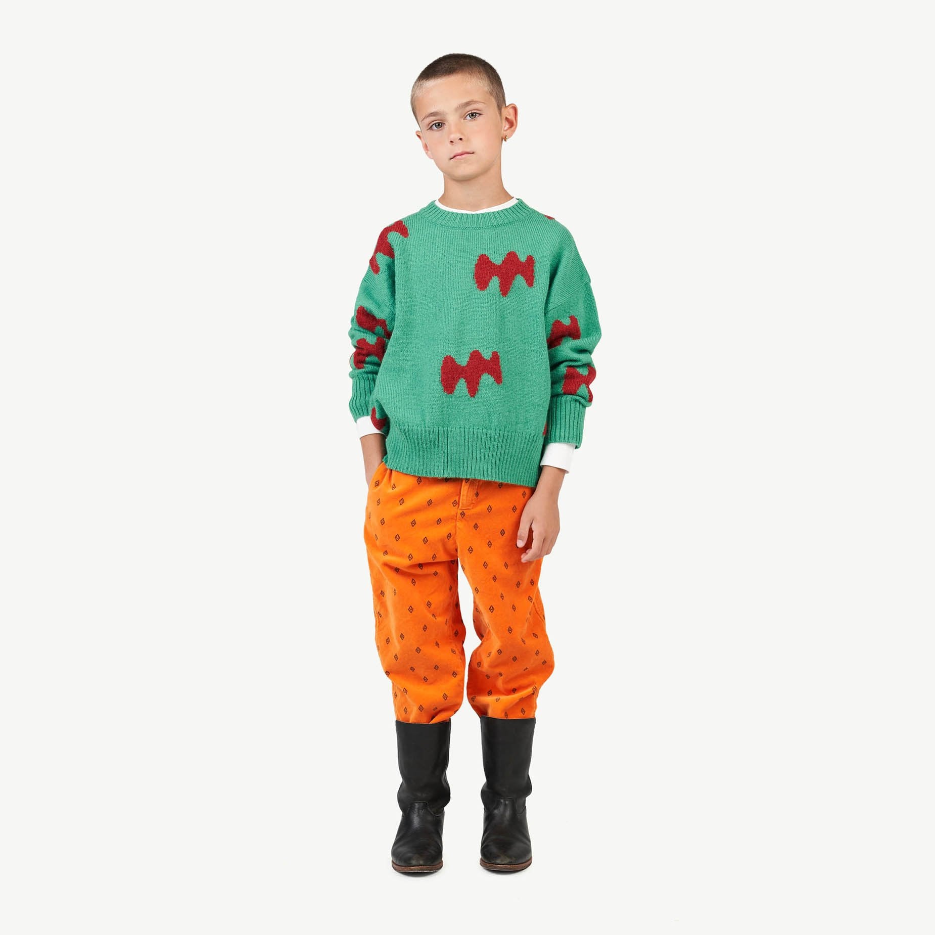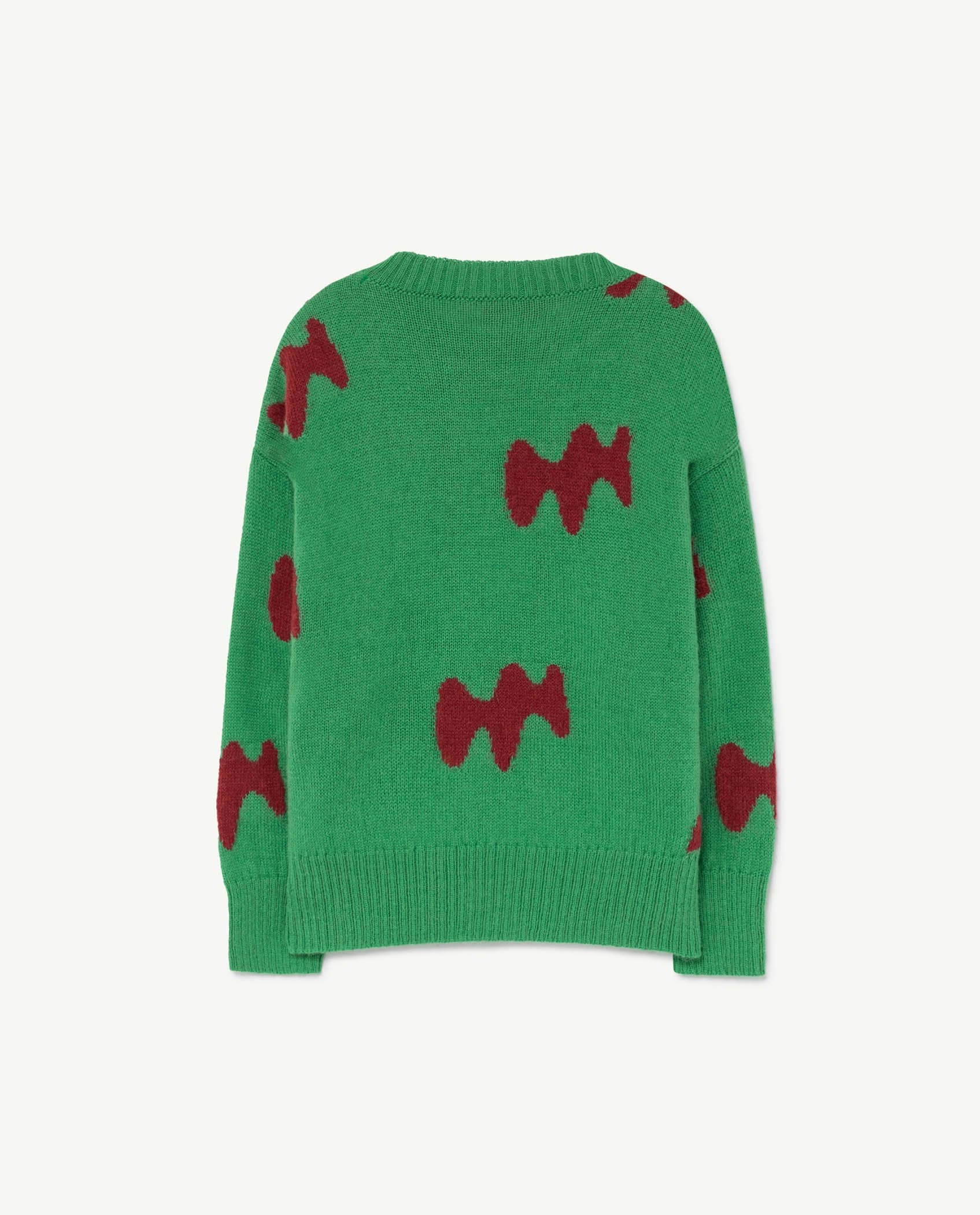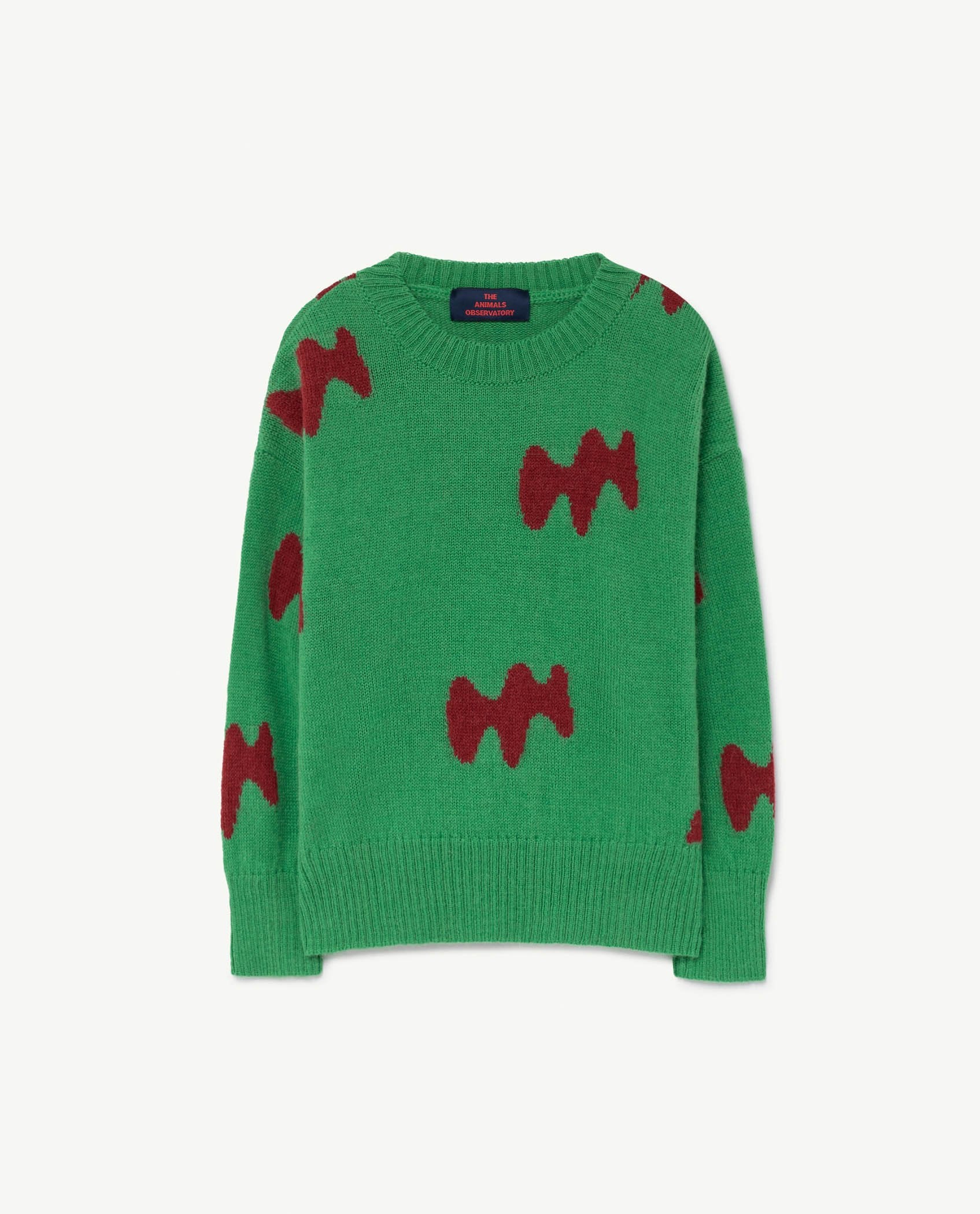 The Green Raven Sweater takes brilliant colour and geometries to new heights in this super soft round neck sweater that pairs perfectly with dresses or trousers alike. 40% superfine alpaca, 15% merino wool, 45% polyacrylic.
