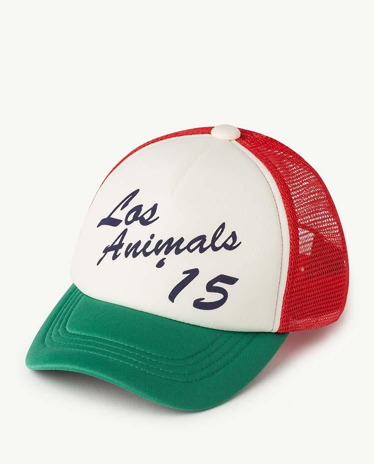 The Green Hamster Cap is a classic baseball style hat with 'Los Animals' scrawled across the front. Tricolor mesh and contrast bill. 100% polyester.