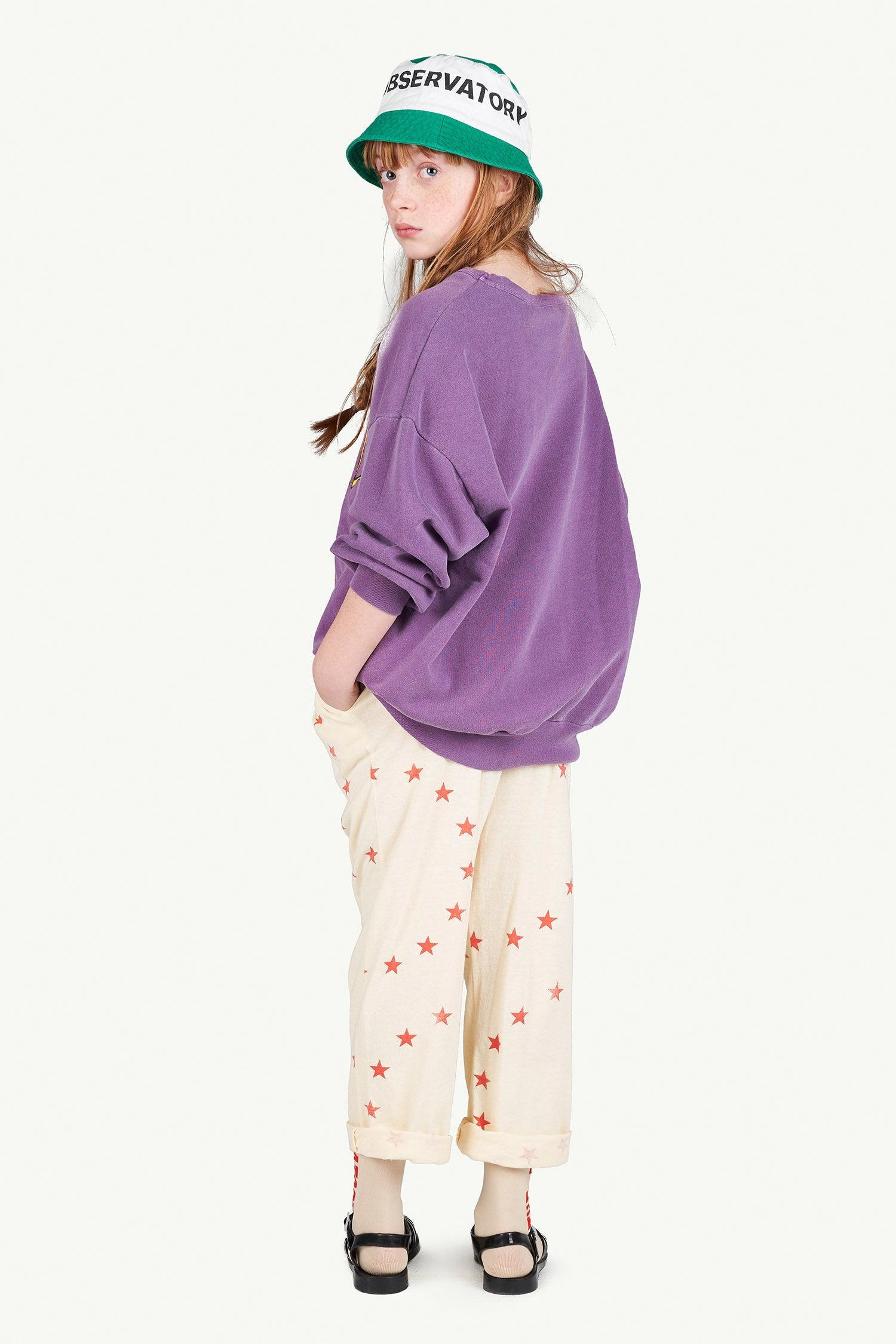 A dropped shoulder gives this cozy Purple Big Bear Sweatshirt a relaxed fit with its wide, rounded neckline and ribbed cuffs and hem. Logo printed on front.