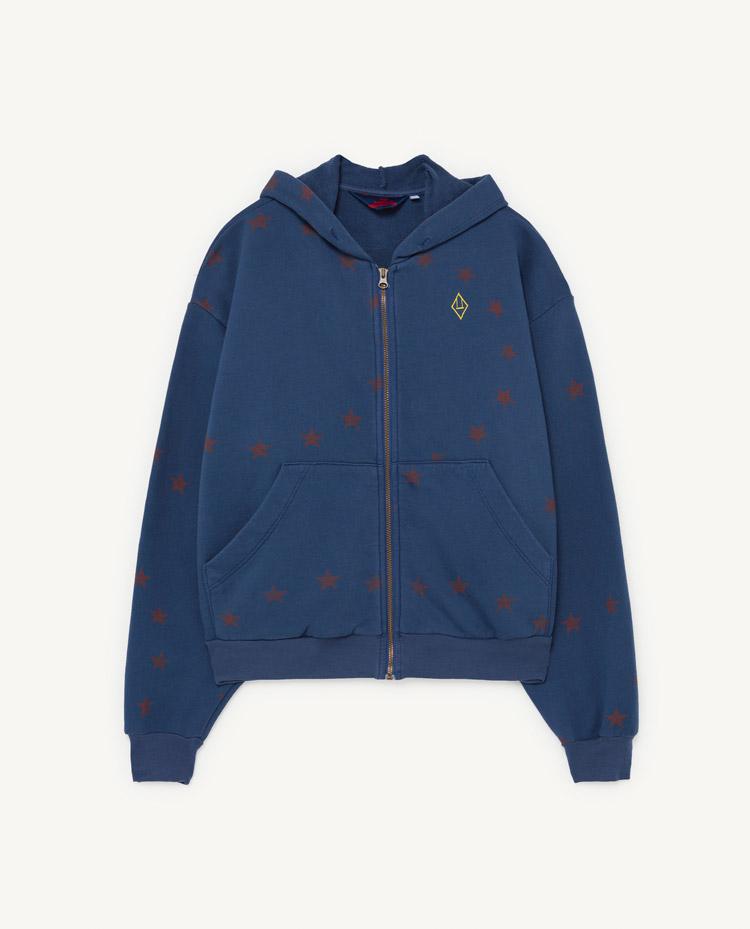 Never chilly, always cool in this casual zip front Blue Seahorse Sweatshirt made from cotton with star motif all over.