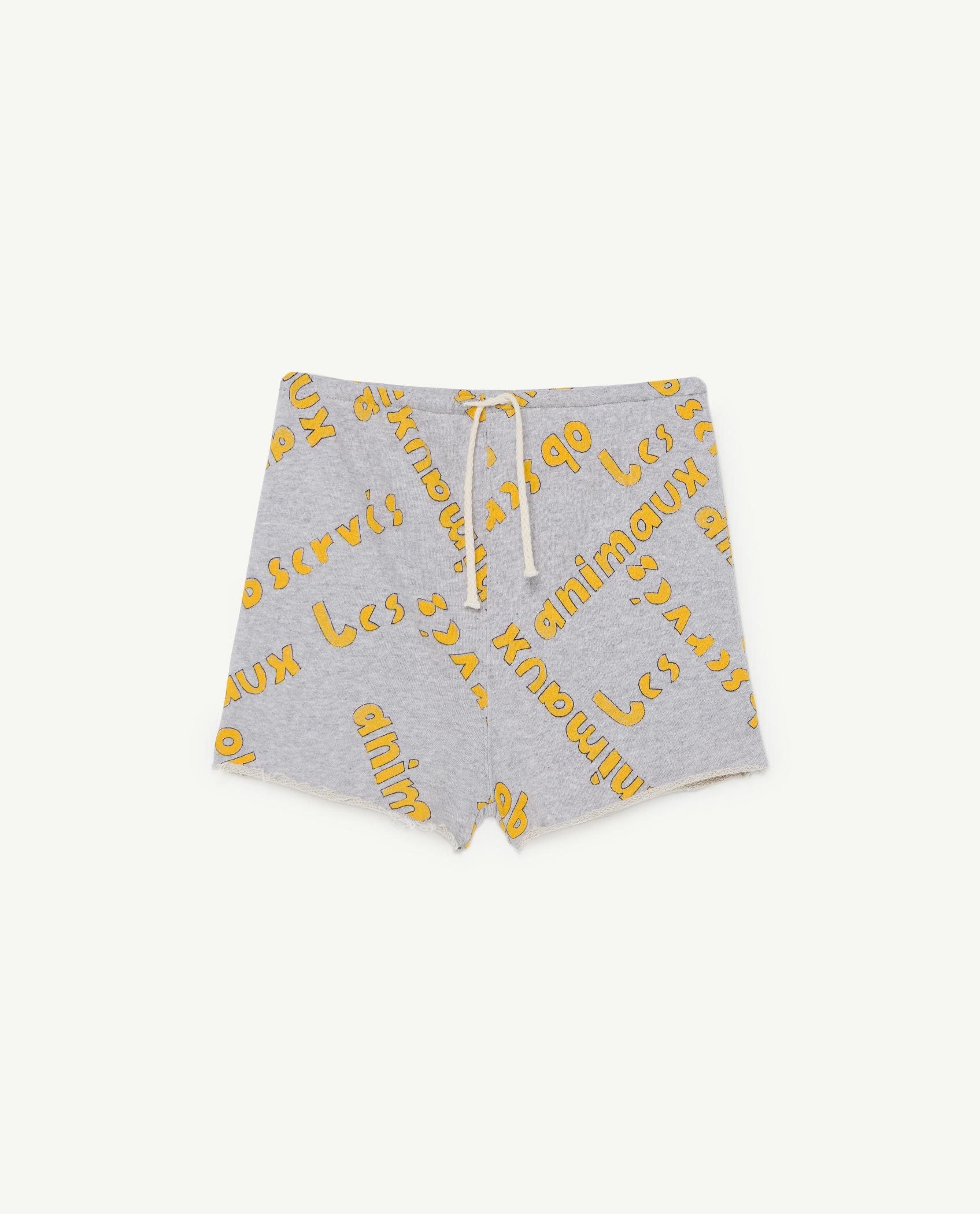 Time to explore in our comfy, drawstring Grey Hedgehog Kids Shorts made from cotton with bright yellow print all over.