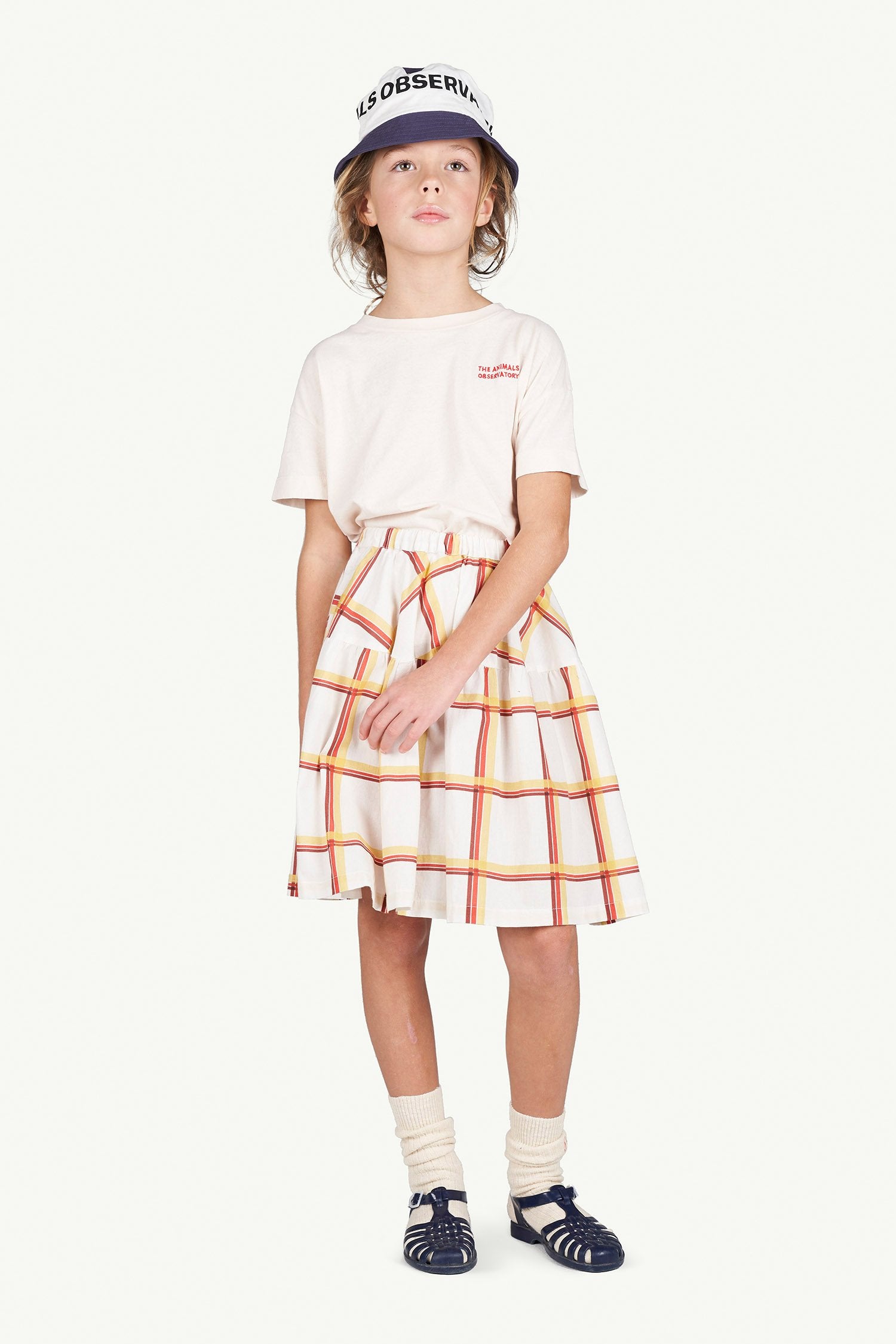 A pull-on Checkered Turkey Skirt that goes with everything in a bright checkered print with slightly gathered skirt.