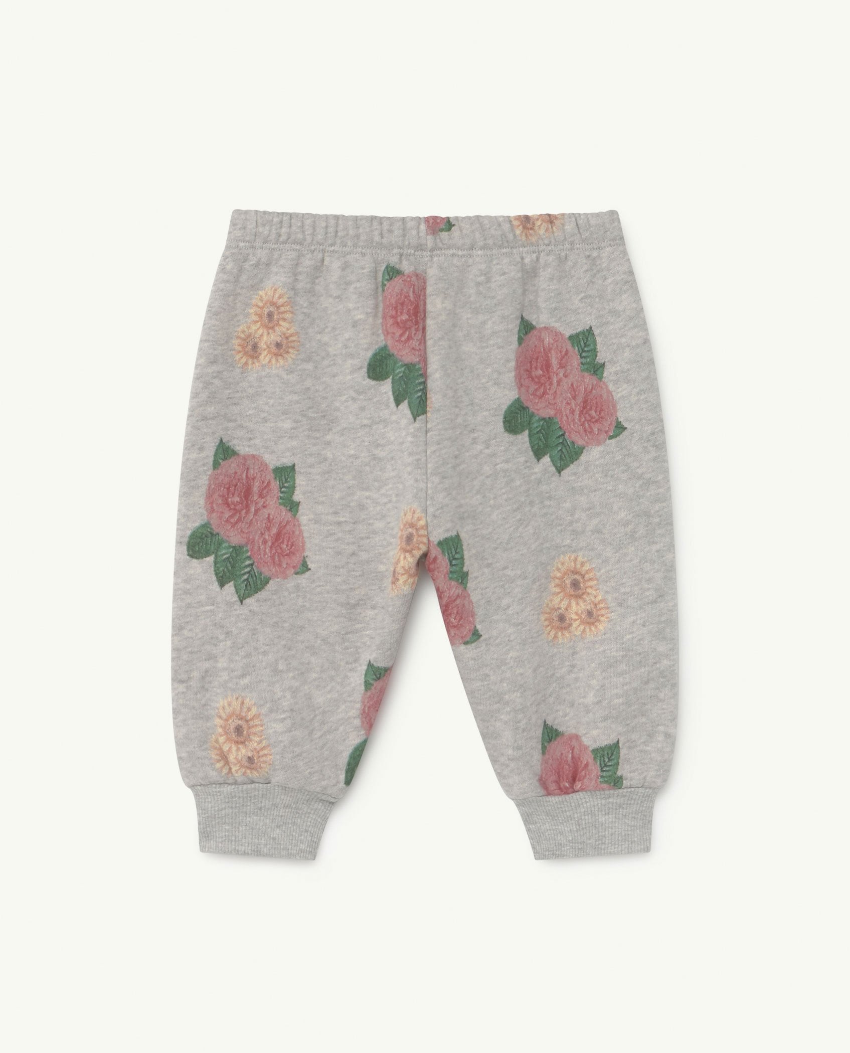 Casual jersey pants in 100% cotton, fleece lining with a tapered leg in soft grey with a floral pattern to leave you feeling rosy