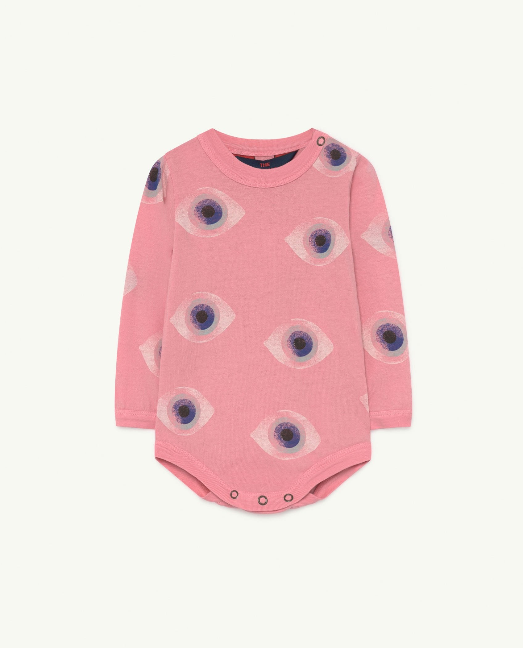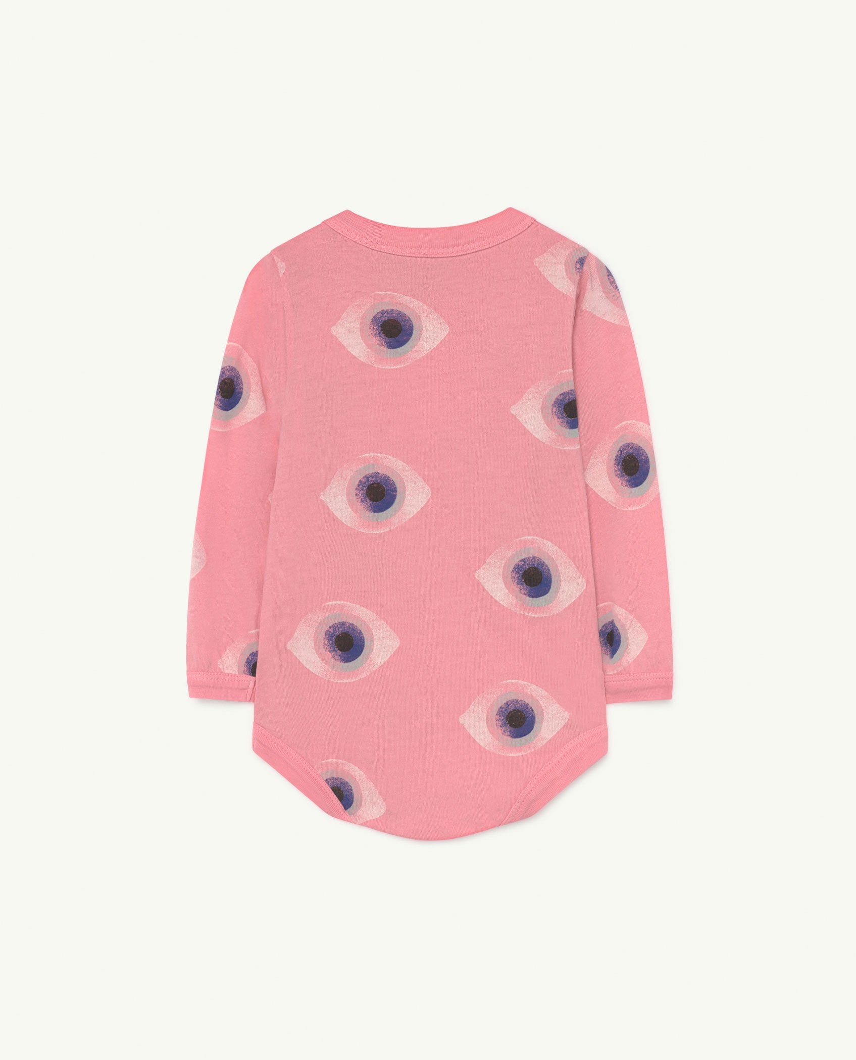 "Let your little one snuggle up in this versatile long-sleeve body, in pink with a print that is literally ""eye-catching""."