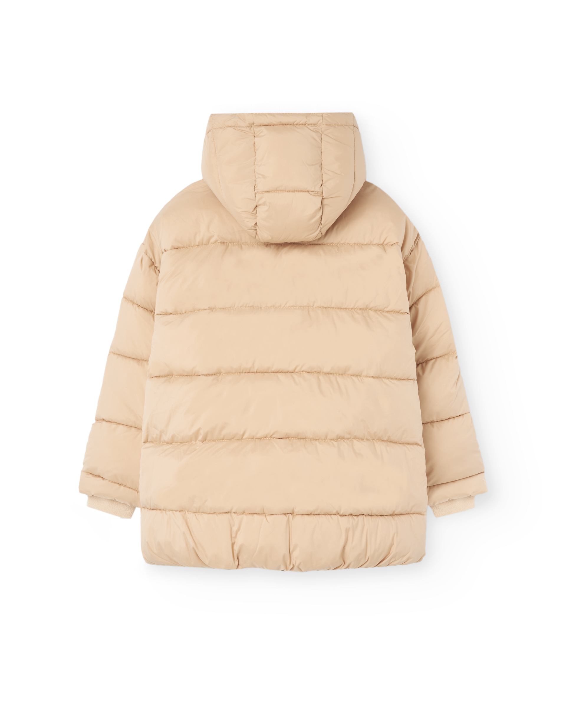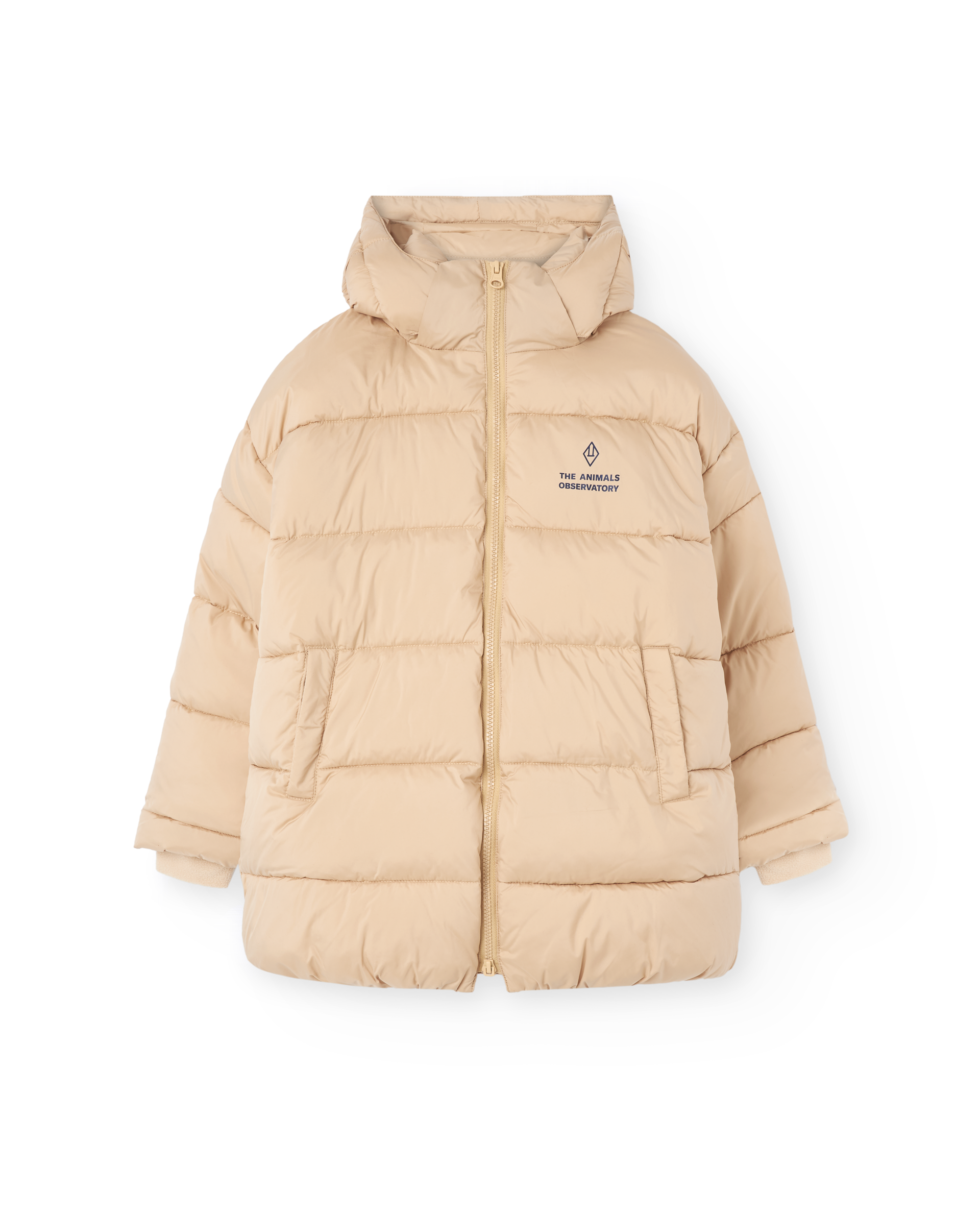This beige green jacket for kids will let them stay out of the cold and is water-repellent.