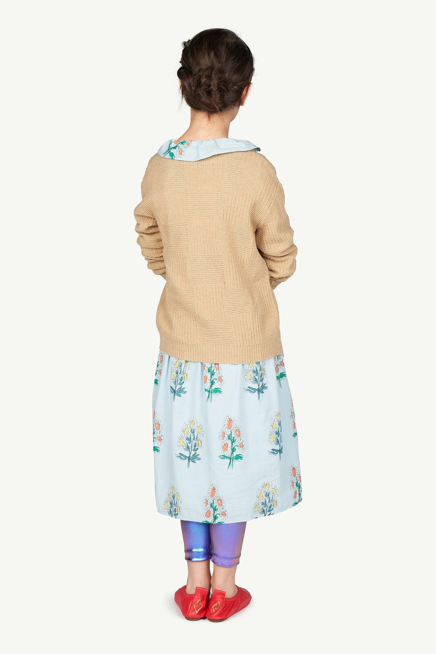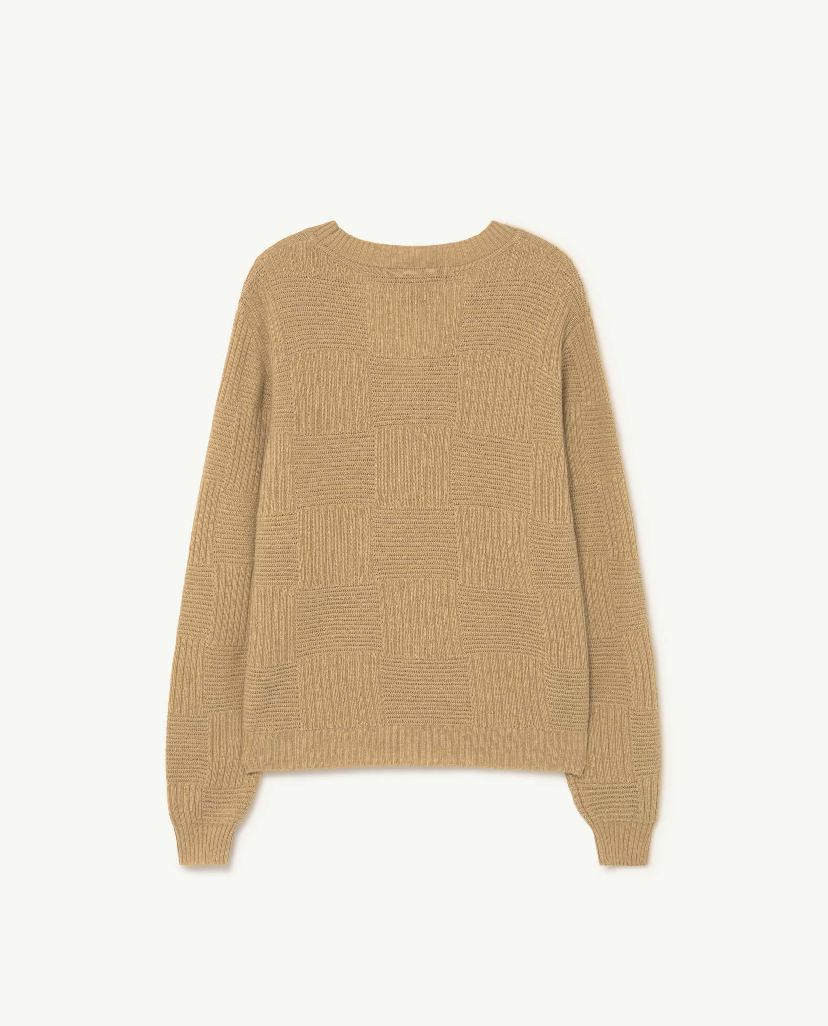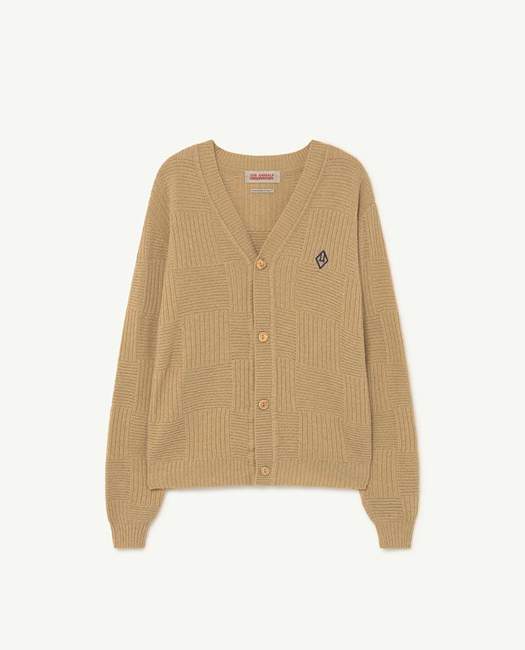The Beige Logo Racoon Cardigan is a classic cardigan with a vintage feel, featuring our logo.
