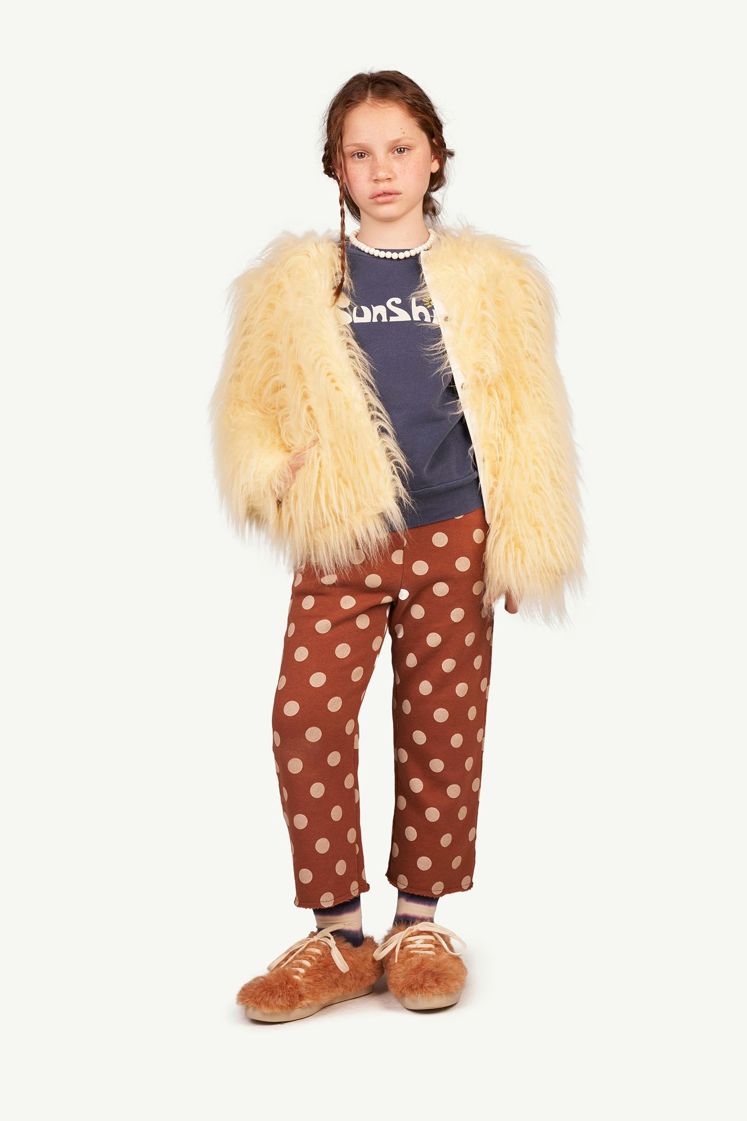 The fluffy Beige Shrew Jacket in soft beige is the perfect party accessory that'll keep them warm on colder days.