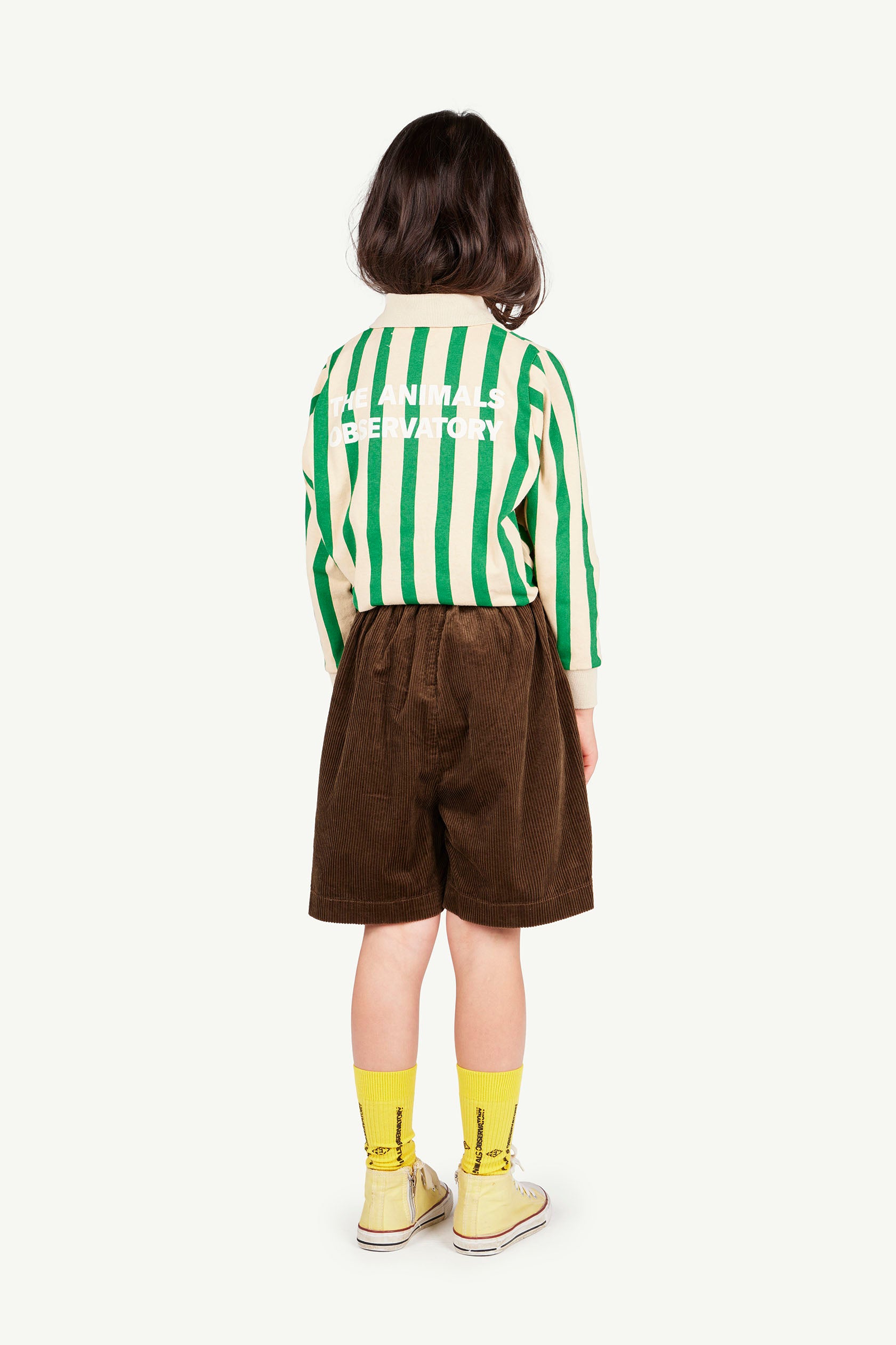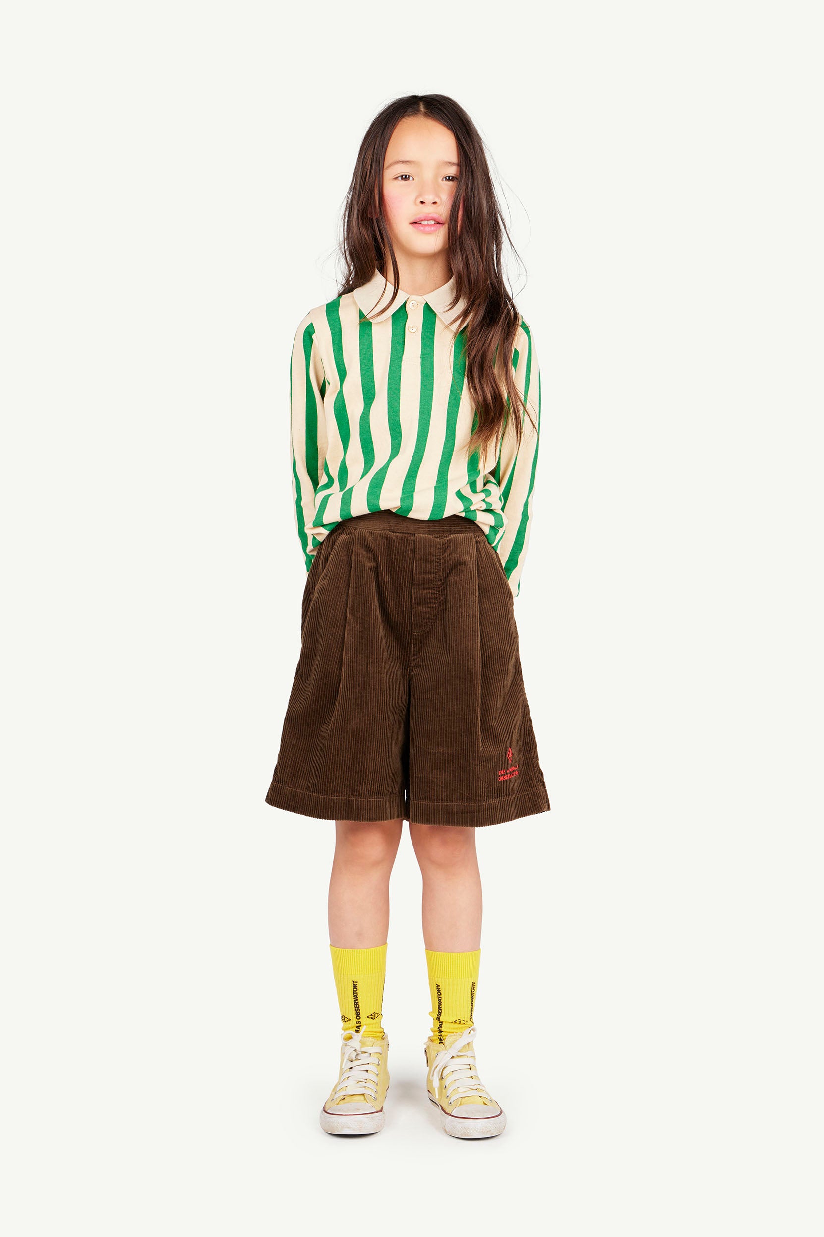 This beige long-sleeved kids T-Shirt reminds us of those historic English soccer looks, with a trendy twist which is also easily combinable.