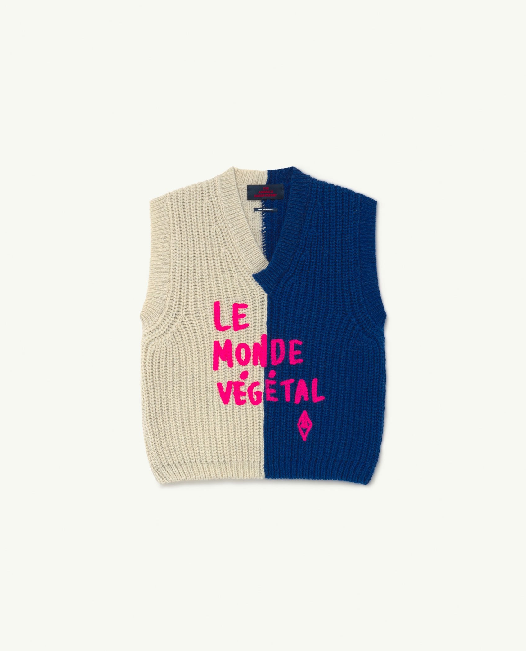 Bicolor Le Monde Bat Vest, get the best of both in this colour-block vest that features "Le Monde Vegetal" writing on front.