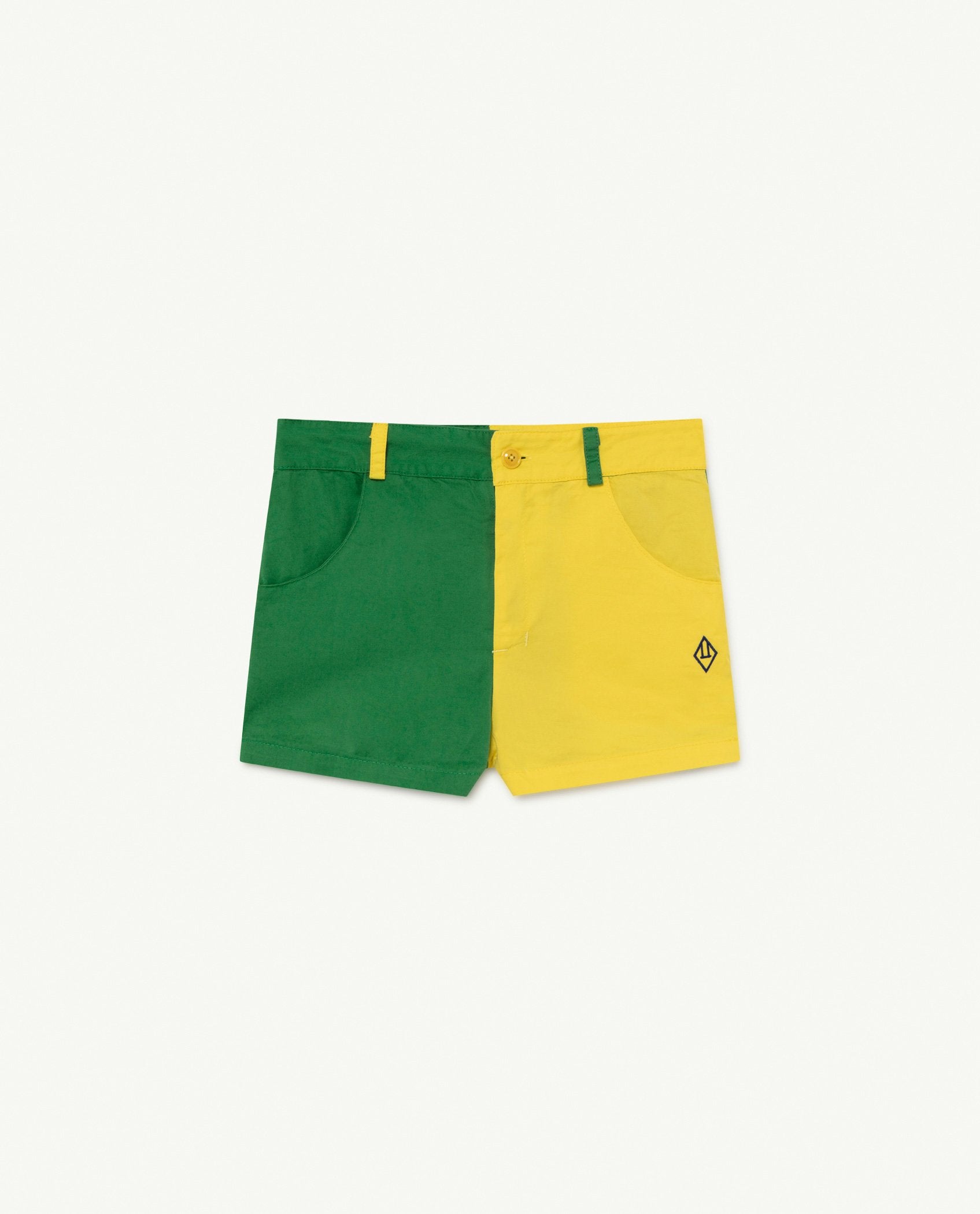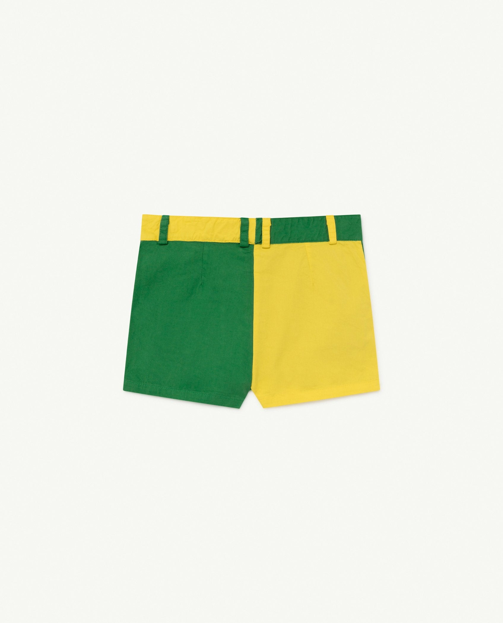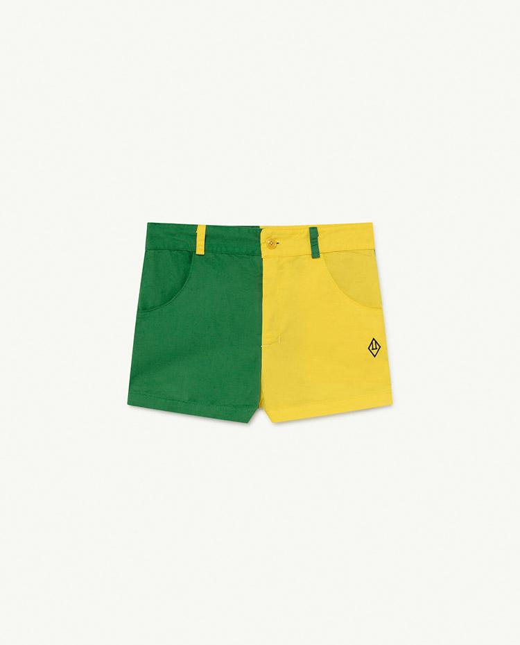 Make a statement in bicolor shorts in a contrasting green and yellow.