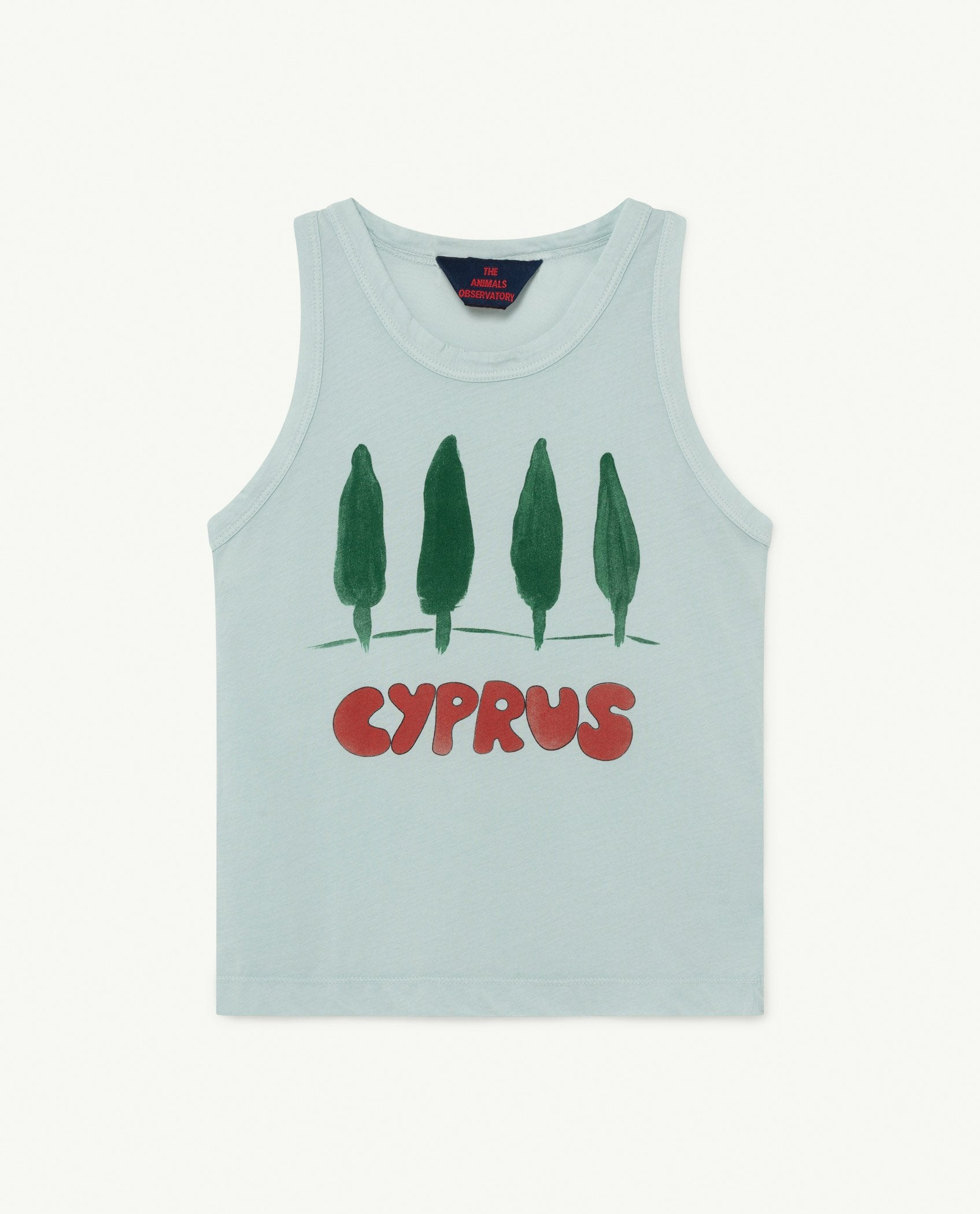 They'll love wearing this fun cotton Tank Top in blue with a Cyprus motif. Exclusively available on The Animals Observatory online shop.