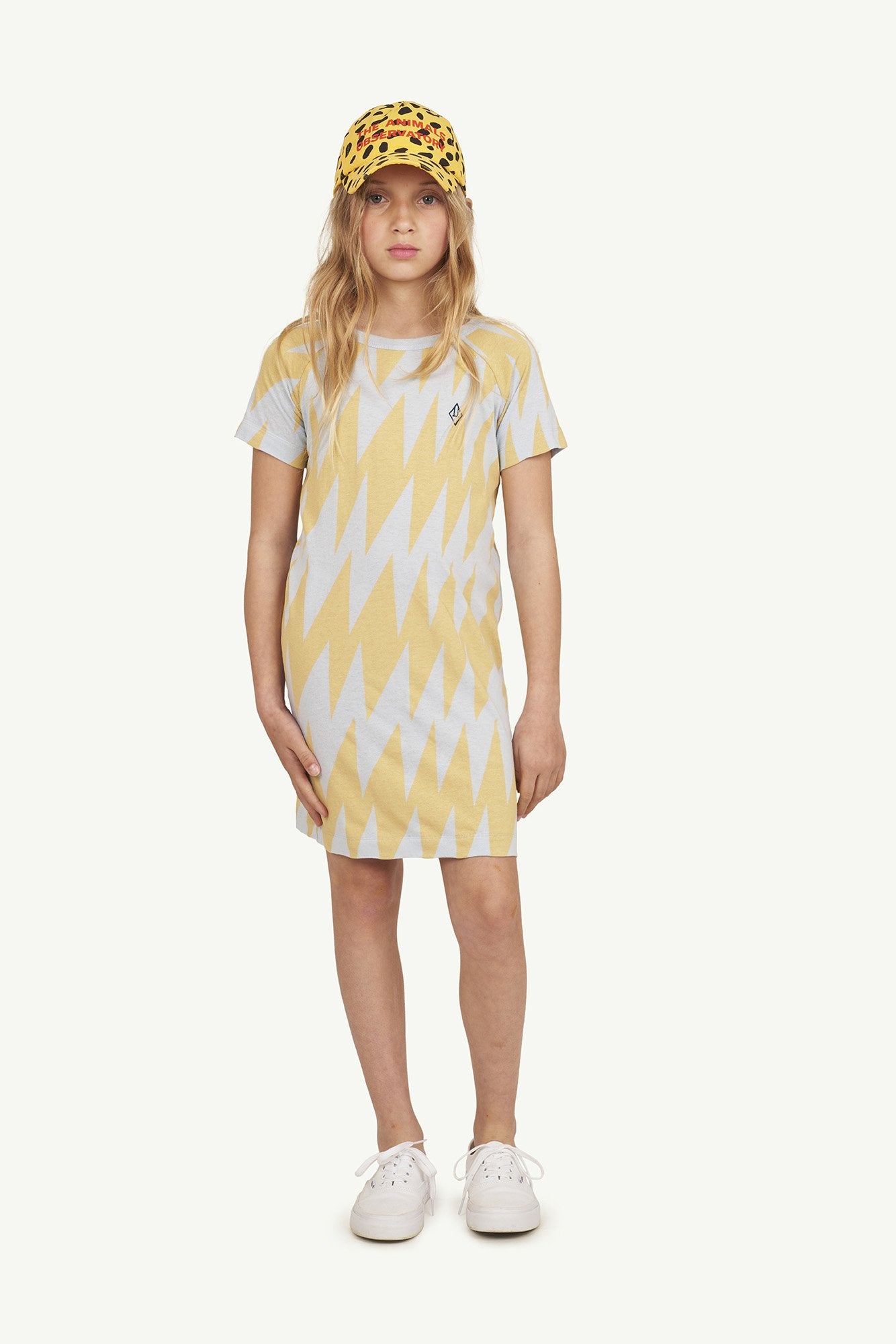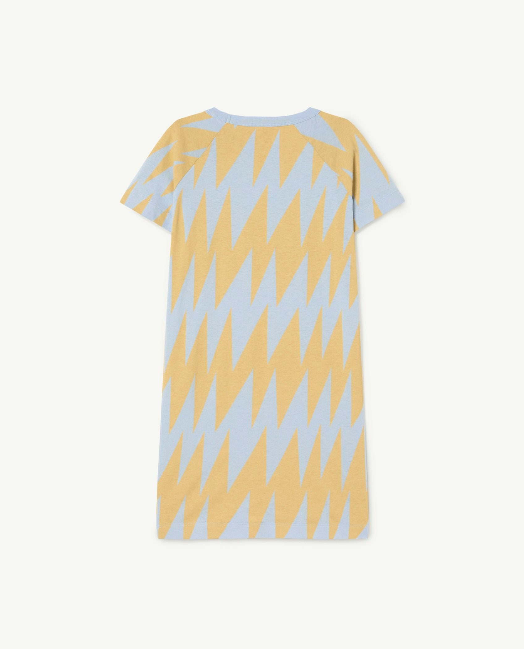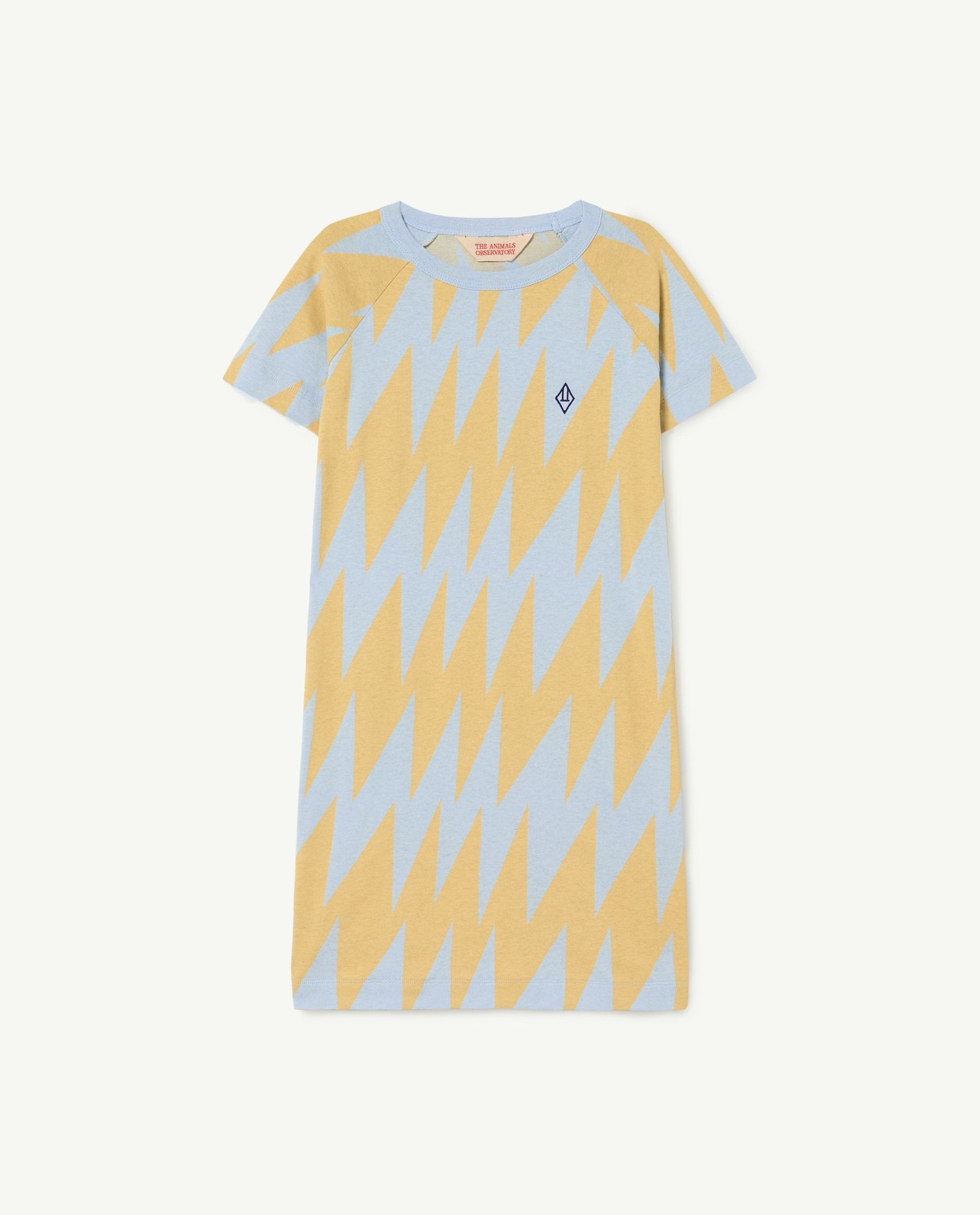 The Blue Gorilla Dress is a dress long t-shirt that features a lightning pattern all over it. Fully cotton made, comfortable and easy to be worn in any day-to-day activity. An ideal piece to have in your kid's wardrobe. The Animals Observatory logo is featured on the front side. The model's height is 135 cm and is wearing size 8 years.