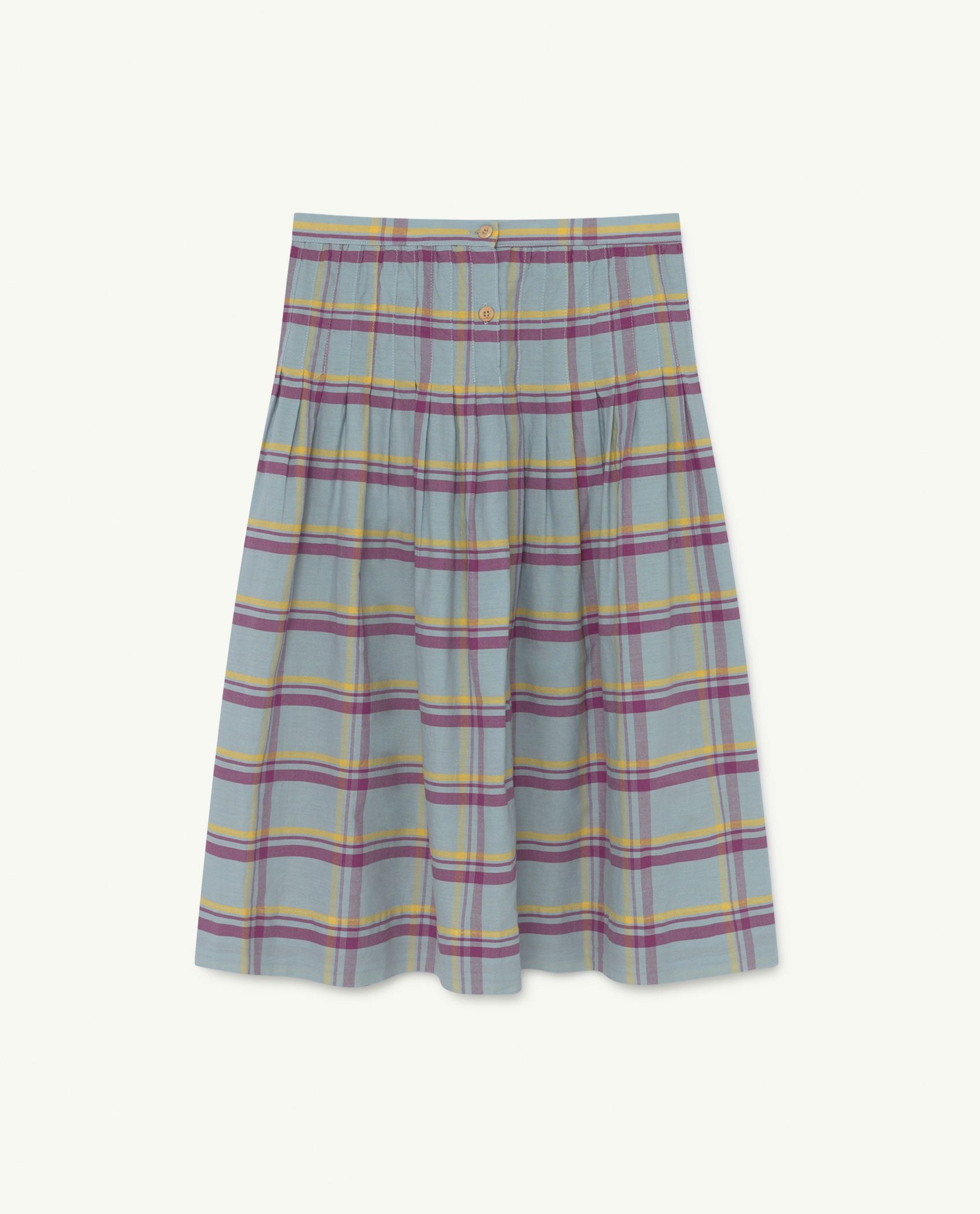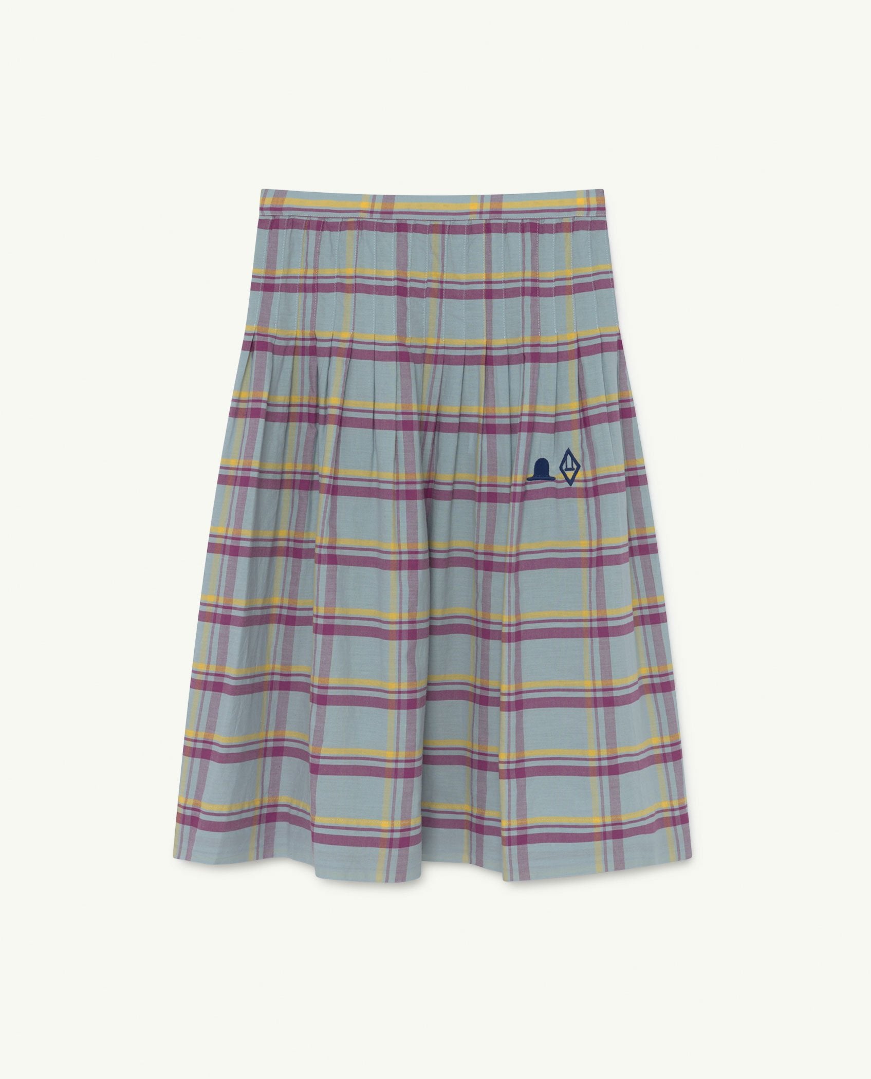 A long skirt with pleats in a wide blue gingham print, featuring The Animals Obsrvatory logo. Casual and fun, they'll be able to wear it anywhere.