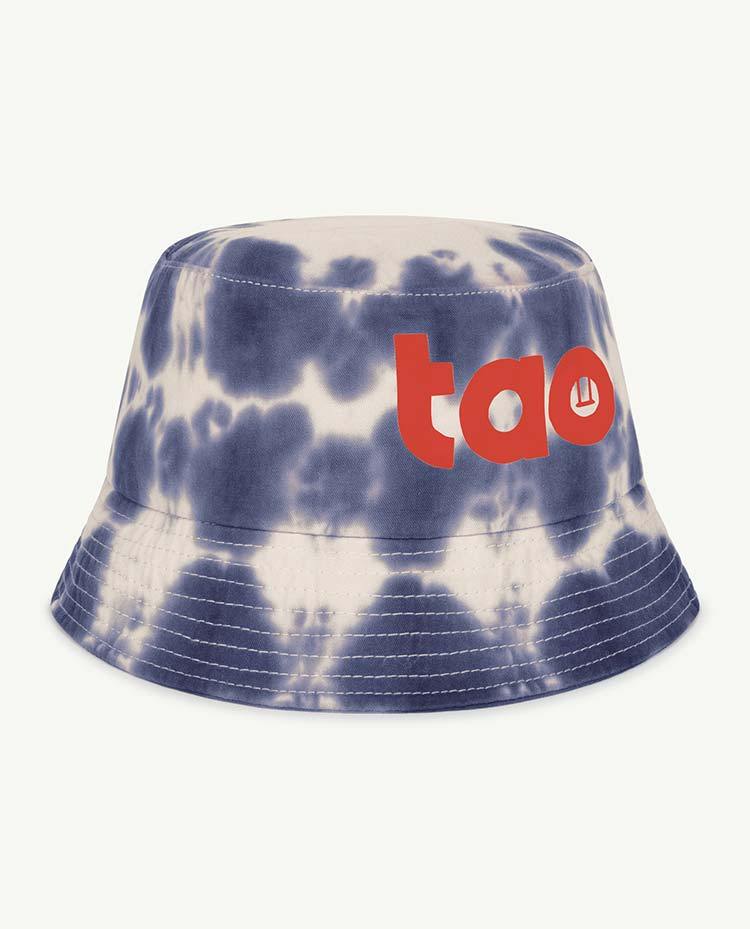 "This retro-inspired bucket Blue Starfish Hat comes in a blue tie dye print an features the ""tao"" motif on the front. Comes in size M (54cm) and L (57cm)."