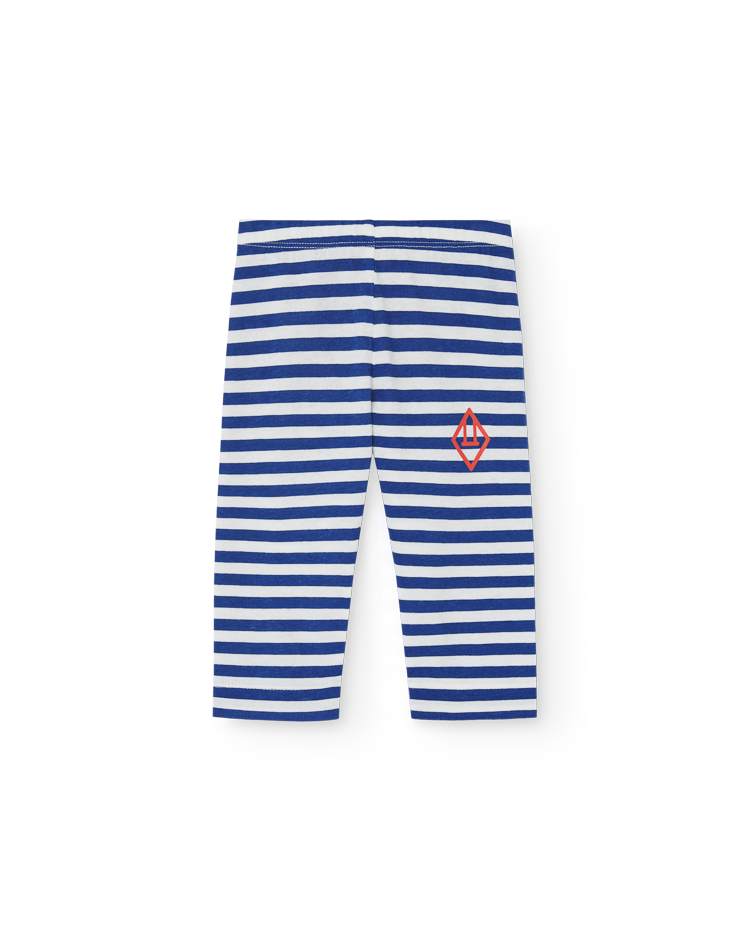 Basic baby leggings with blue stripes. They will keep their legs warm all day.