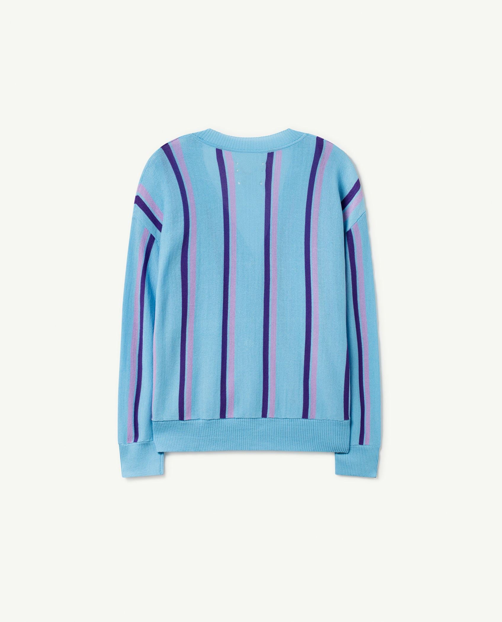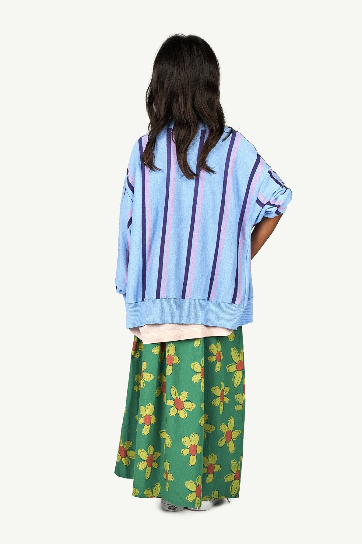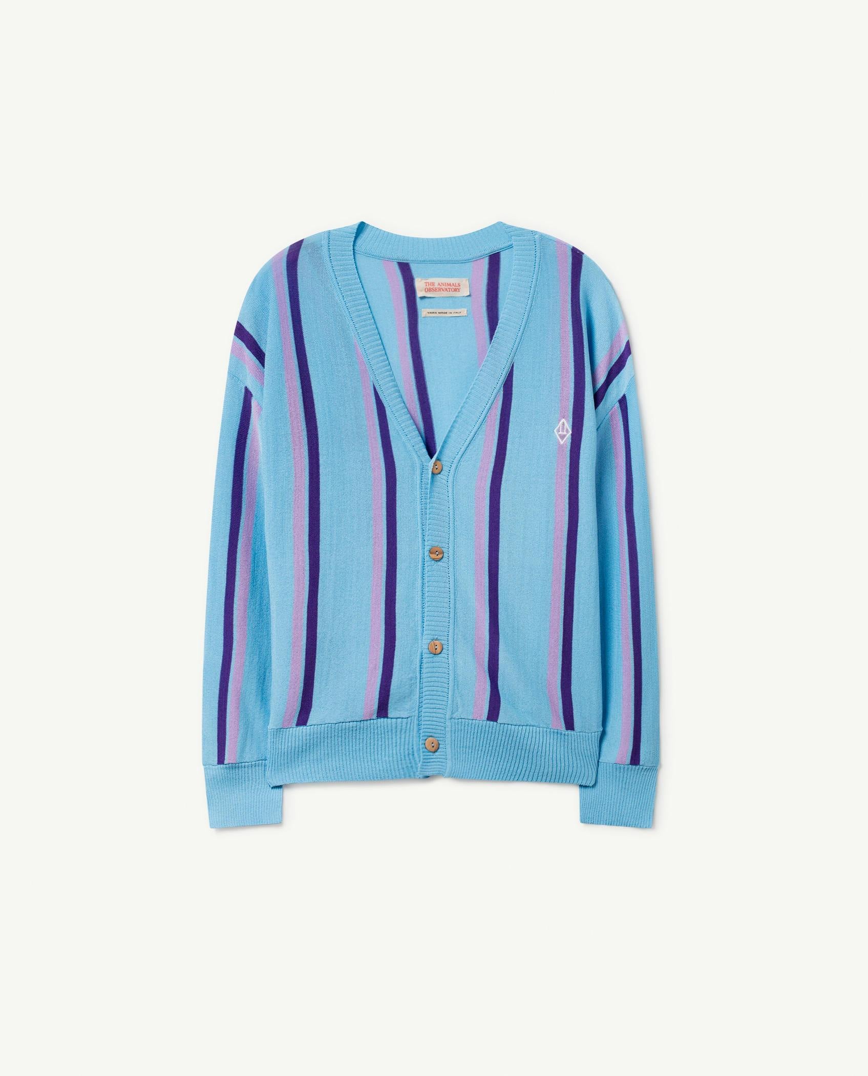 The Blue Stripes Raccon Cardigan is a comfy cardigan with a slouchy fit. Featuring a bright stripey print and our logo on the left. The model's height is 129 cm and is wearing size 8 years.
