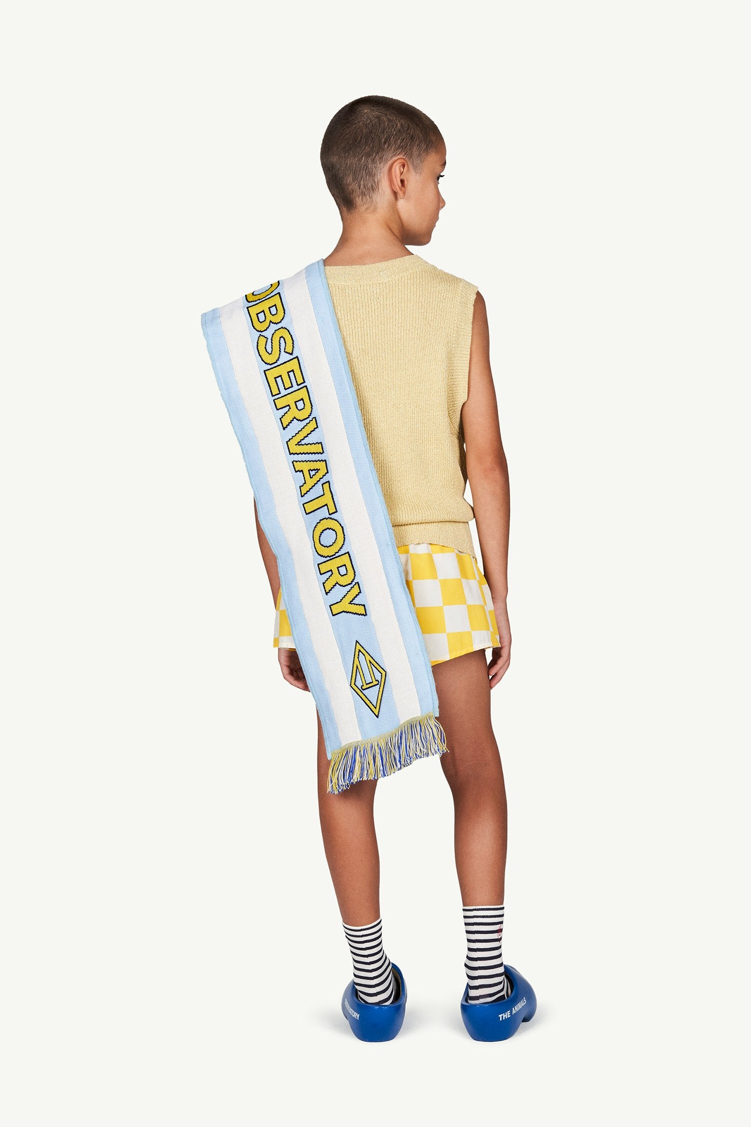 This blue stripes printed scarf has a sporty feel and is perfect for wrapping up on chillier evenings.