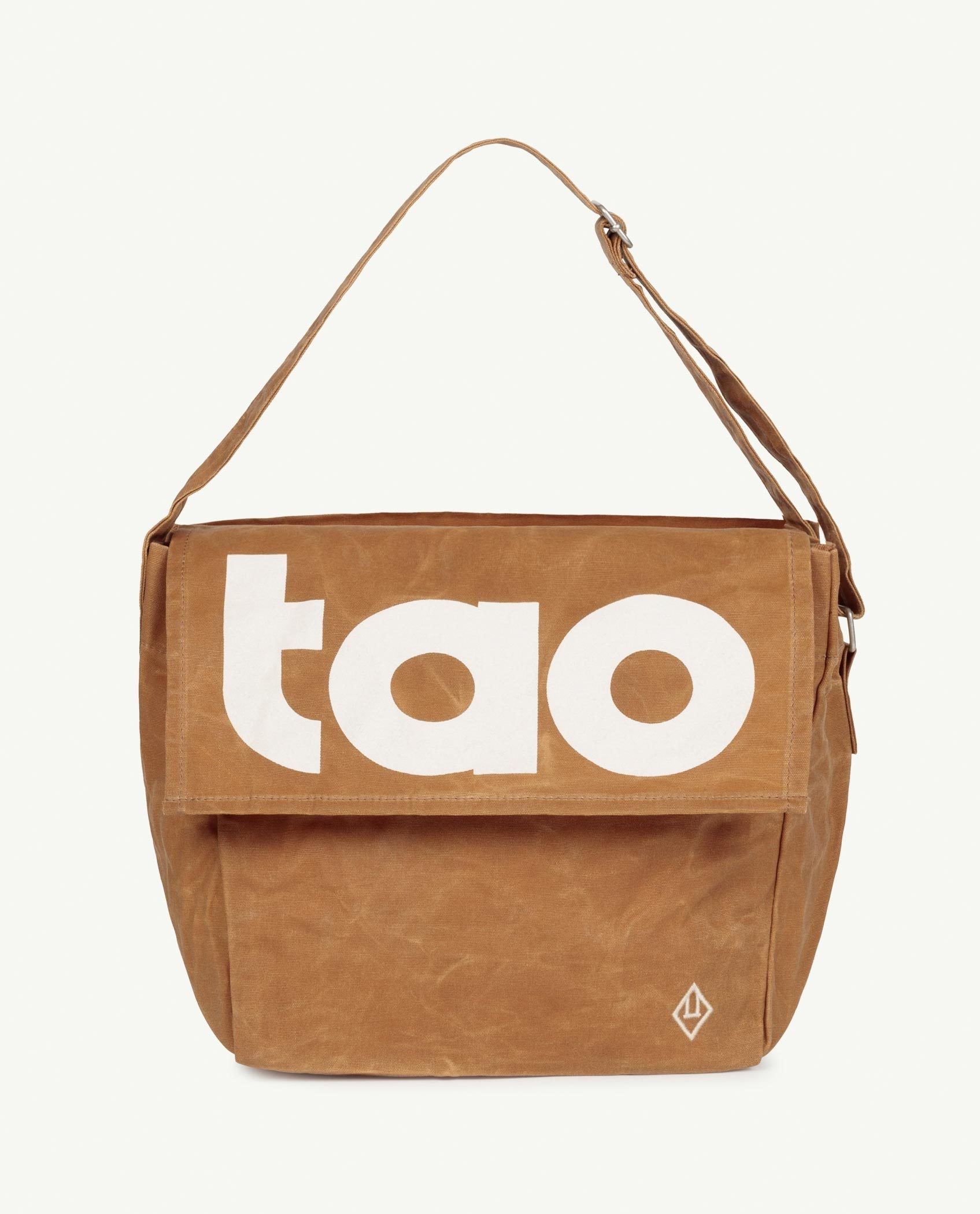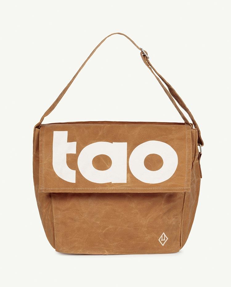 "This cotton Brown Messenger Bag has a wax finish and features the ""tao"" motif, making it the ultimate accessory for going back to school."