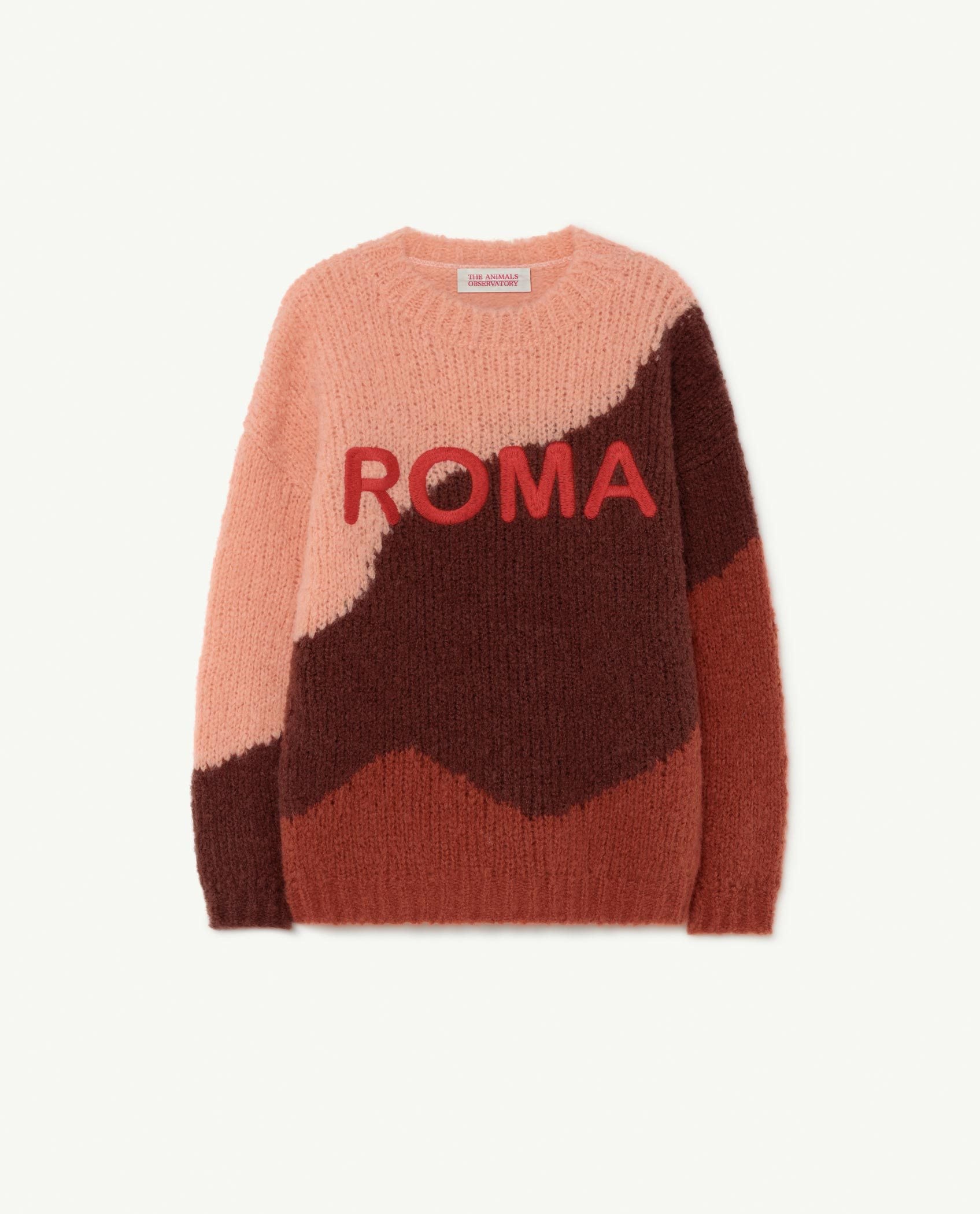 "They can express their individuality in this soft and cosy Brown Roma City Bull Sweater, which features a colourful, arty design and ""Roma"" written across the front. Exclusively available on The Animals Observatory online shop."