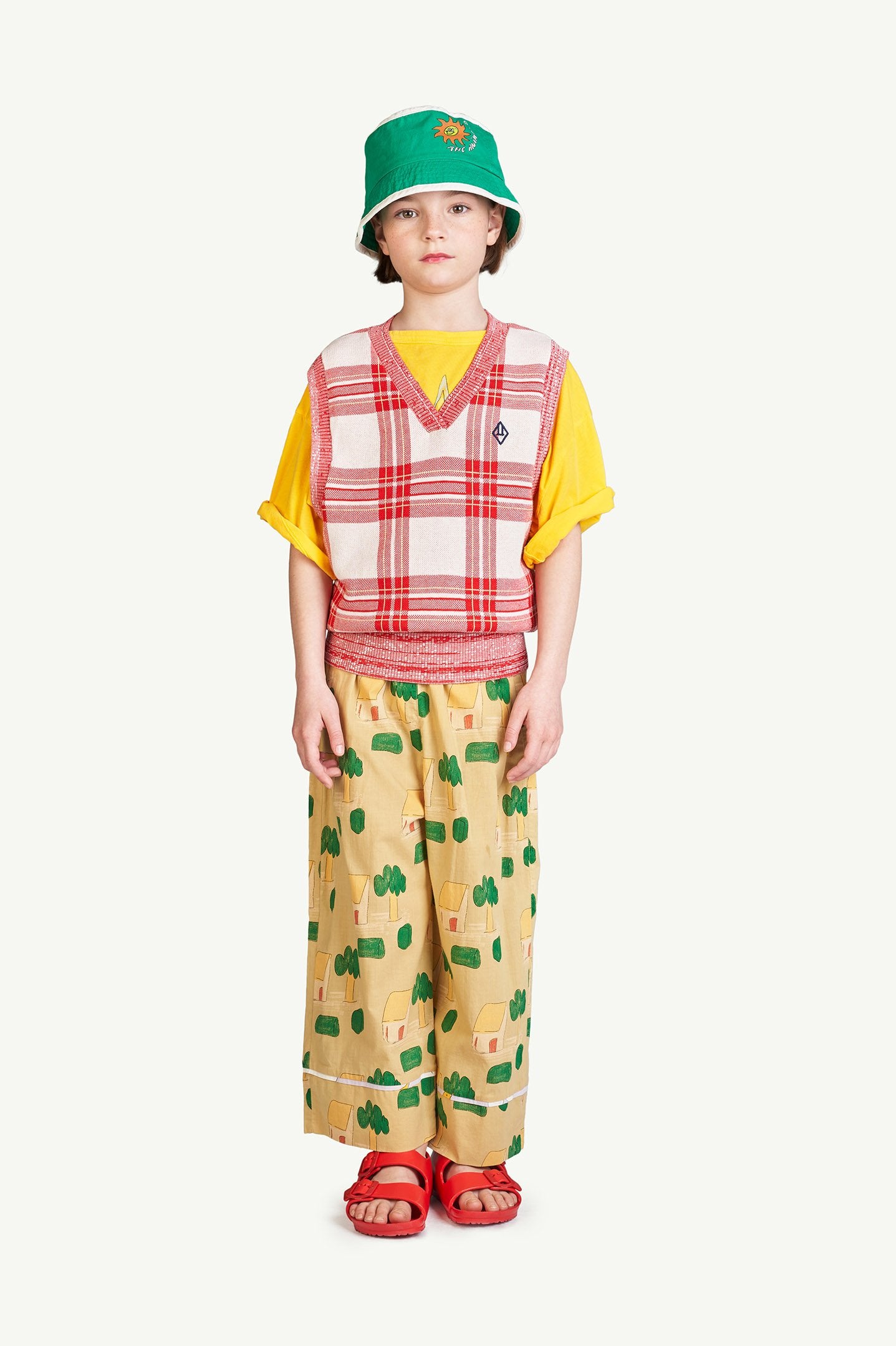 The Camel House Antelope Pants are wide leg open pants inspired by a day in the countryside. With an elastic waist and two pockets on the back side. The model's height is 132 cm and is wearing size 8 years.