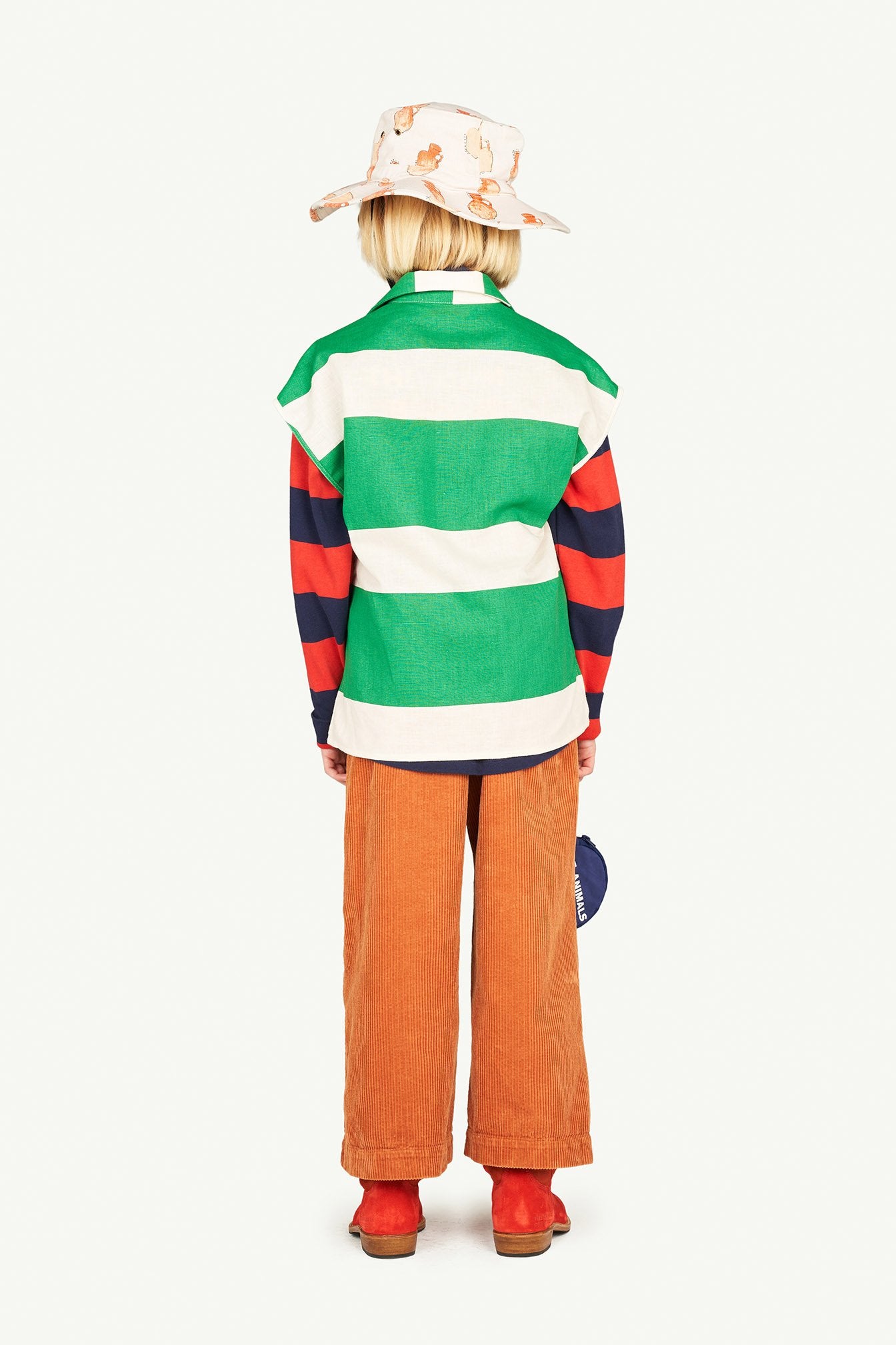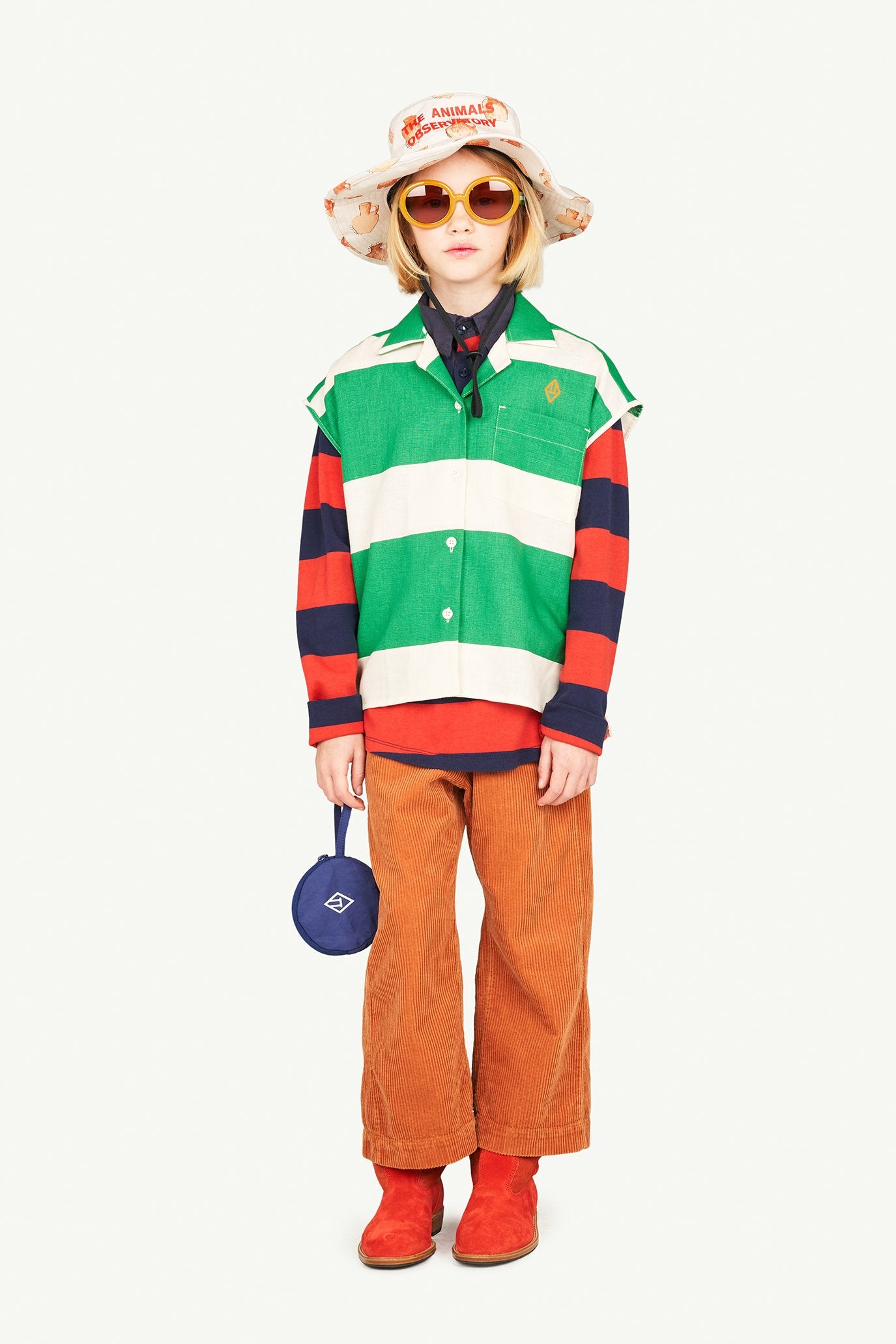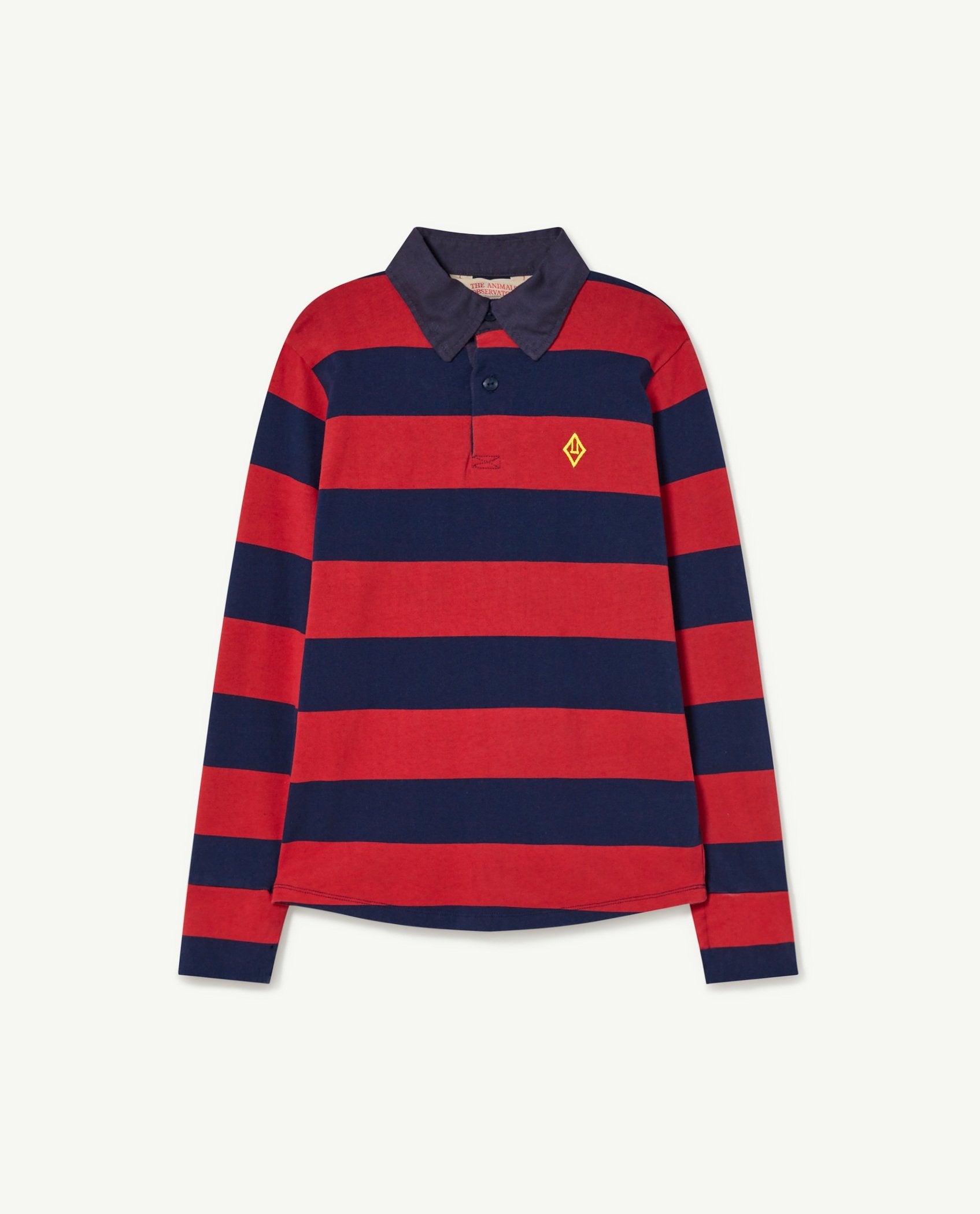 The Deep Blue Eel T-Shirt is an elegant yet colorful style featuring red stripes on a deep blue canvass. It is 100% made of cotton and in a regular fit. The model's height is 127 cm and is wearing size 8 years.