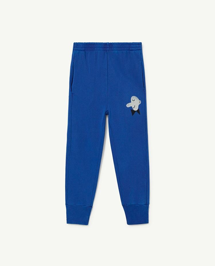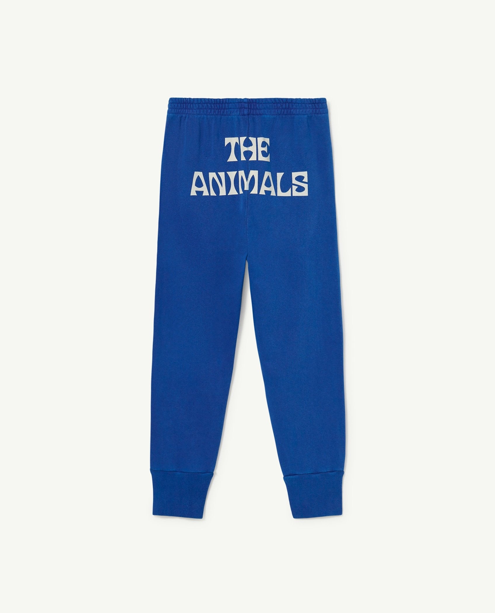 The Deep Blue The Animals Panther Pants are joggy sweatpants with a sportive vibe and featuring The Animals capital letters over the bottom. With an elastic waist. The model's height is 128 and is wearing size 8 years.