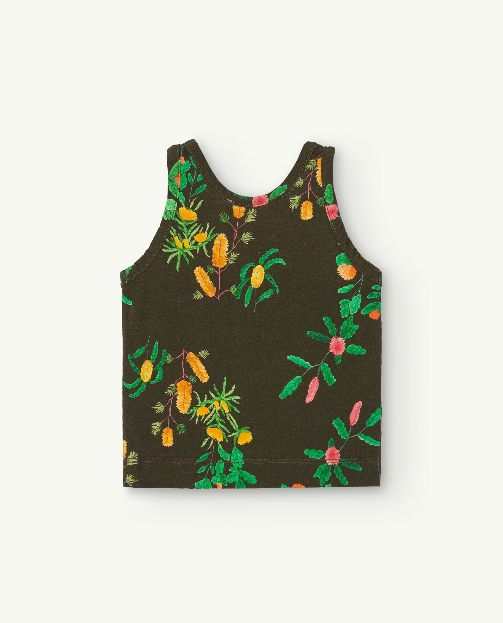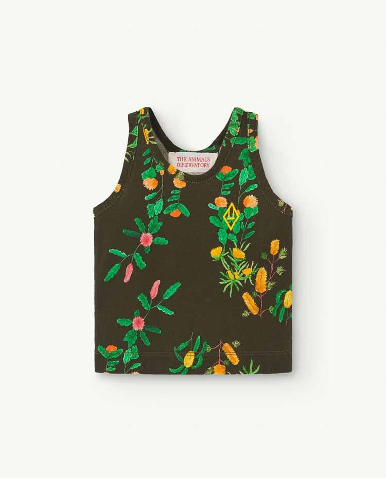 The Deep Brown Frog Baby Tank Top has some colorful flowers printed all over it. It also includes The Animals Observatory symbol on its left bottom, a round neck and it is 100% made of cotton. Babies will feel really fresh and comfortable anywhere they go.