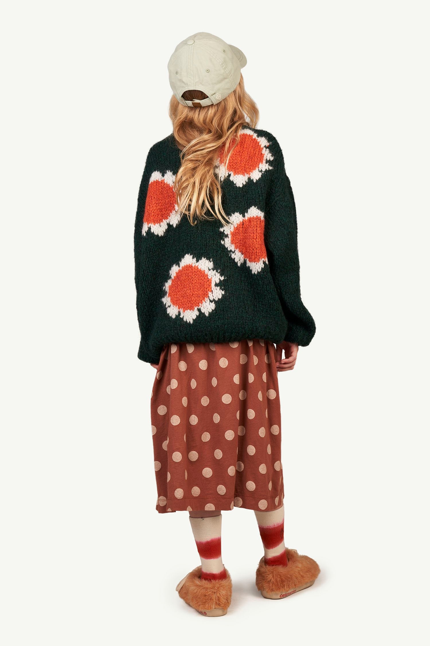 Long and loose, they'll love wearing this cotton Deep Brown Swans Ladybug Skirt in brown with a dot print. Exclusively available on The Animals Observatory online shop.