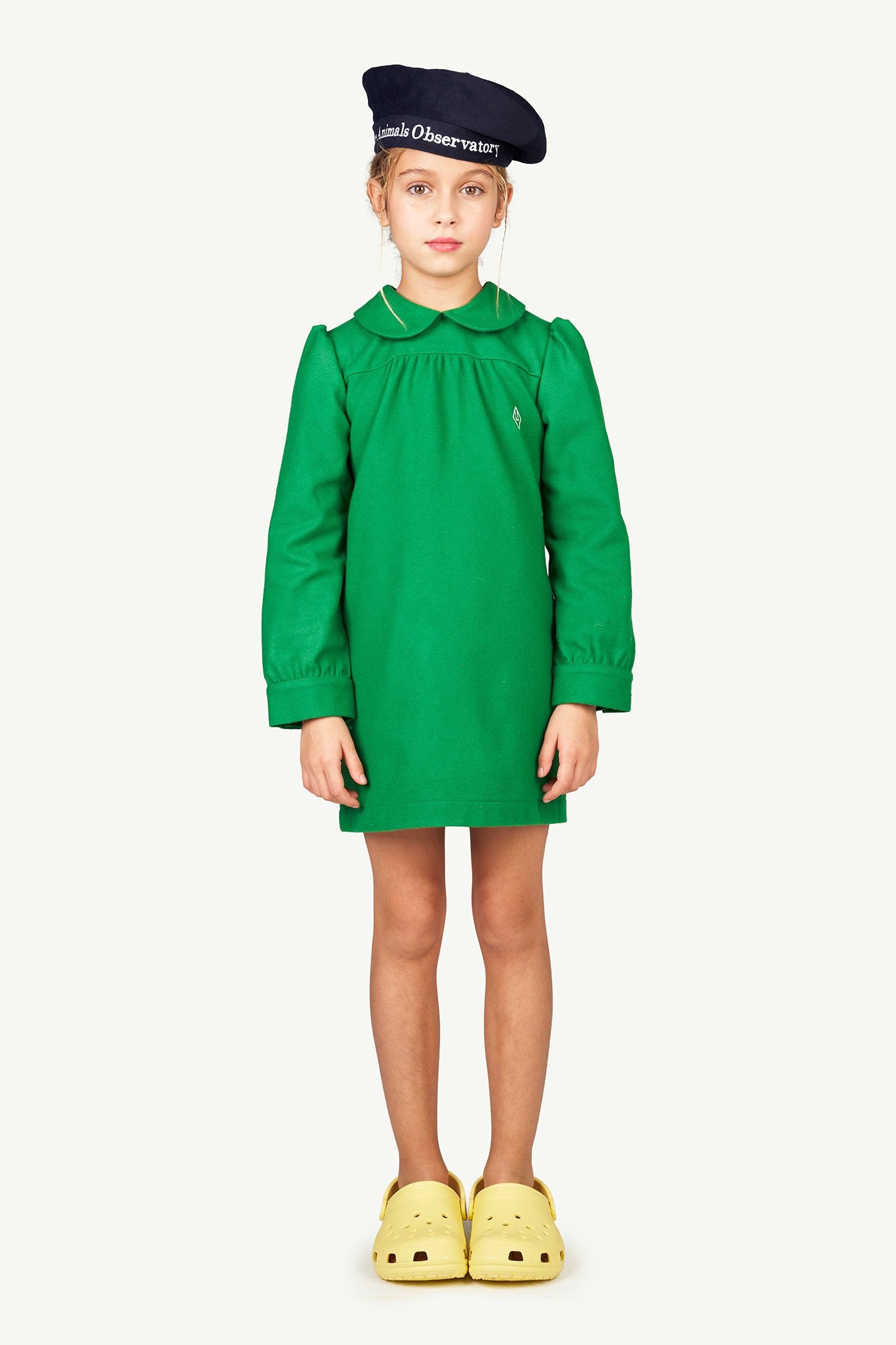 This Green Canary Kids regular fit Dress has a classical touch. Made with a mix of wool and polyamide it's pleasant to the skin and it buttons up from the back side. With a Peter Pan inspired collar. Number one in comfort. The model's height is 130 cm and is wearing size 8 years.