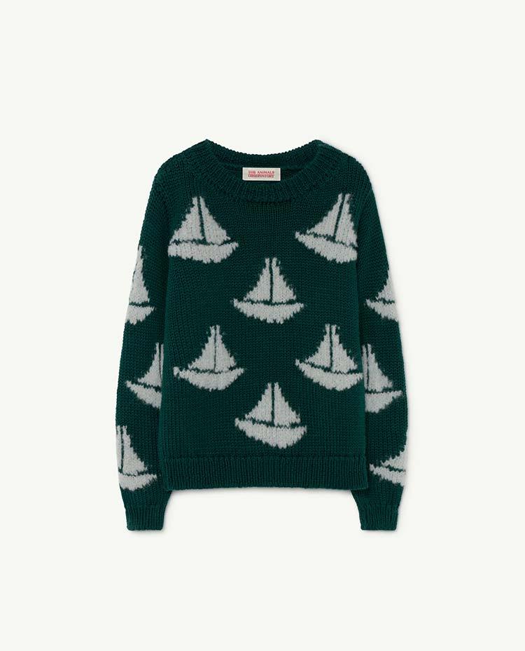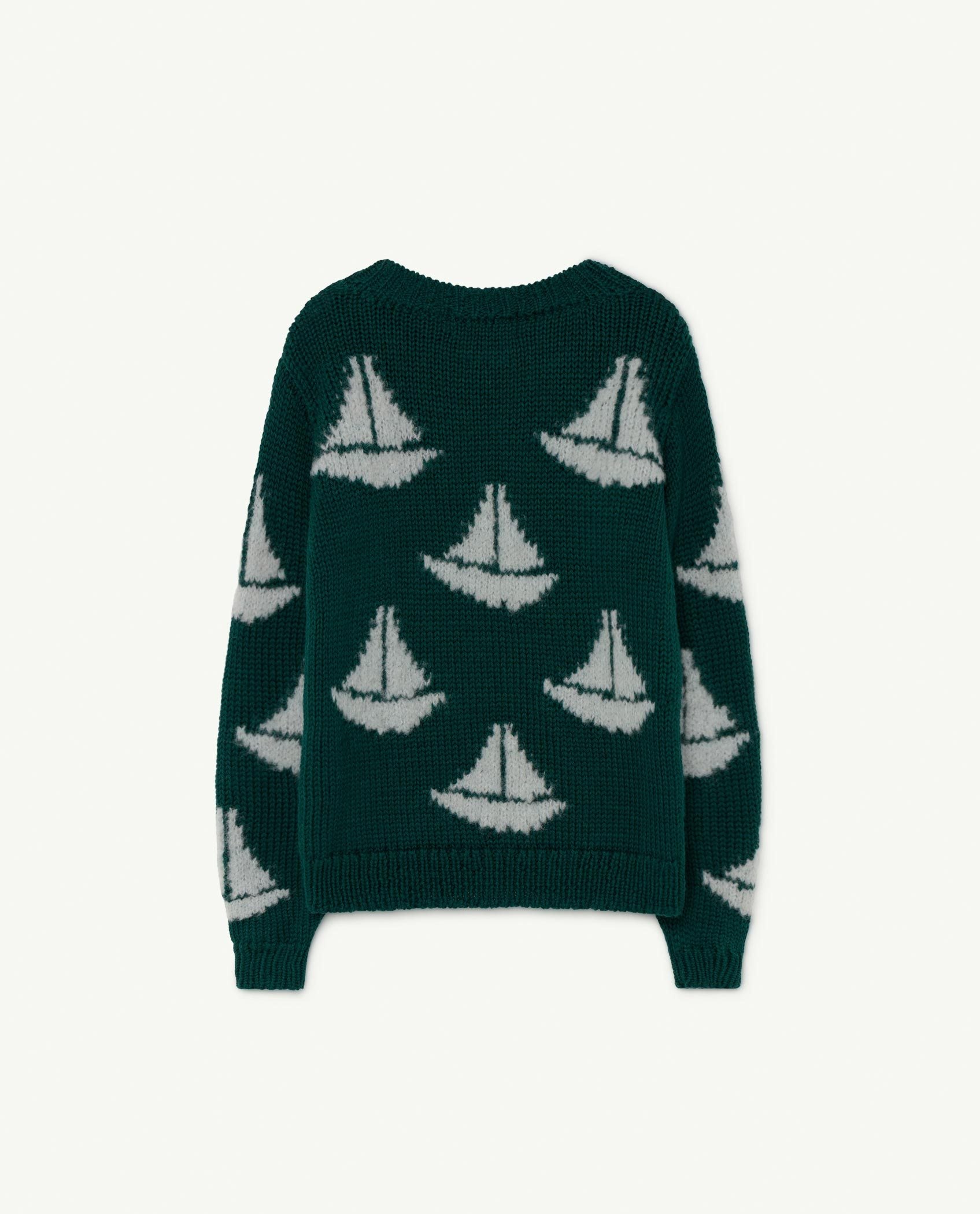 The Geen Arty Bull Sweater is a 100% wool sweater featuring a knitted boat print. A cosy essential with an eye-catching print.