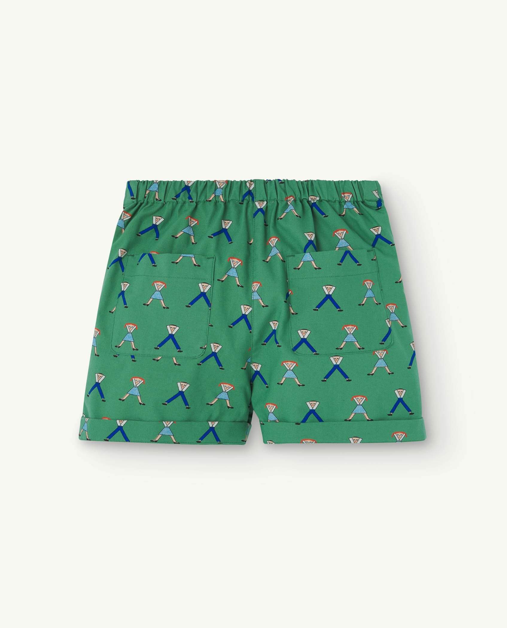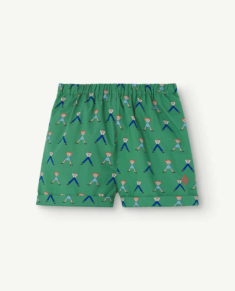 The Green Bee Shorts in a relaxed fit are one the freshest styles from this collection, and so they have a thin fabric, and they are 100% made of cotton. These short pants also feature two cute back pockets and an elastic waist, as well as The Animals Observatory symbol, and a patterned print of cartoonish characters. This is an exclusive style, only sold on this website.