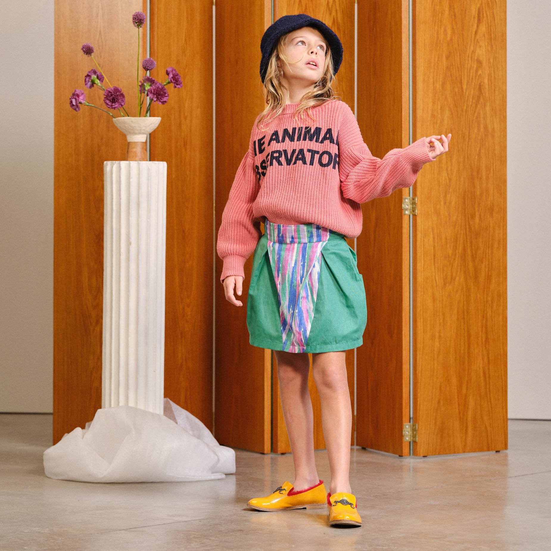 A tailored, linen and cotton mix skirt with an eye-catching print on the front, guaranteed to make them stand out in the crowd.