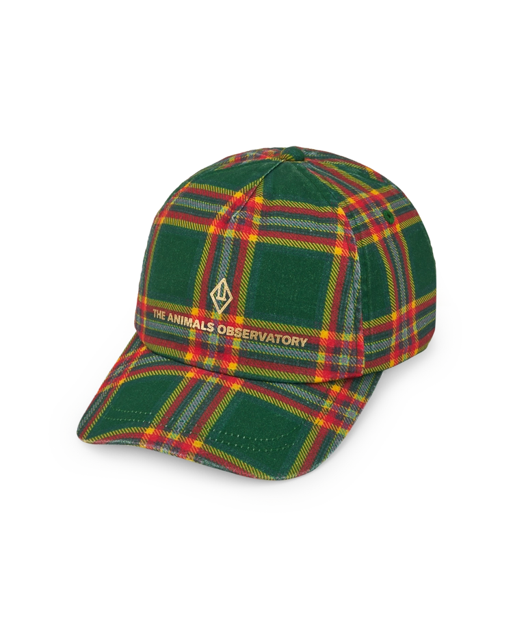 Green cap with red squares, festive and fun, perfect for adding holiday cheer