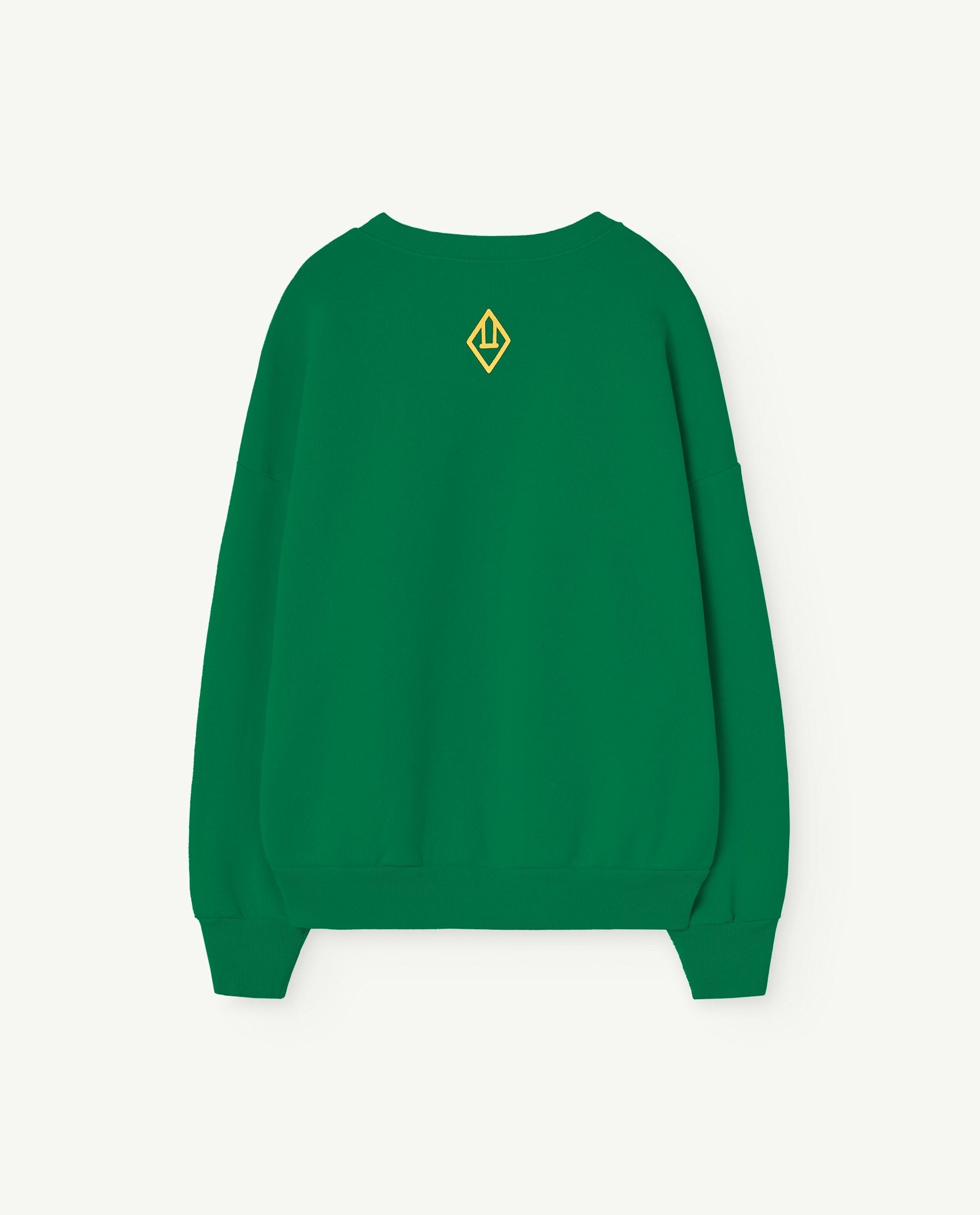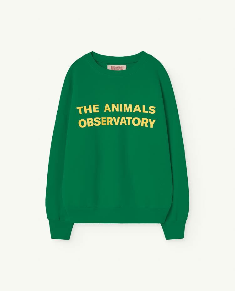 The Green Leo Kids Sweatshirt in a relaxed fit in a relaxed fit is 100% made of cotton and it features a round comfortable neck. This plain, elegant style also displays The Animals Observatory logo on its front and the brand’s symbol on its back.